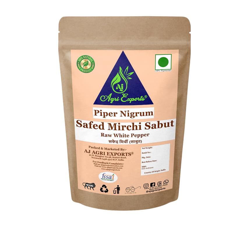 AJ AGRI EXPORTS White Pepper - Smooth and Mild White Pepper with a Subtle Spicy Kick for Gourmet Cooking | Non-GMO (25 Gram) (Pack of 1)