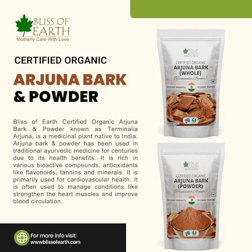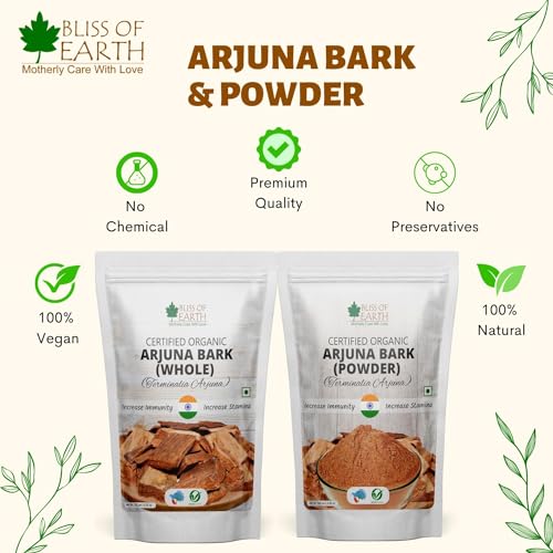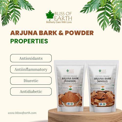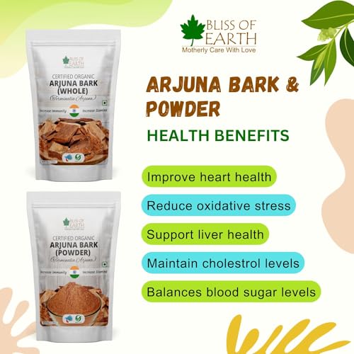Bliss of Earth Arjuna Bark Whole, Natural Ayurvedic Herb, Heart Health Support, 200gm (Pack of 2)