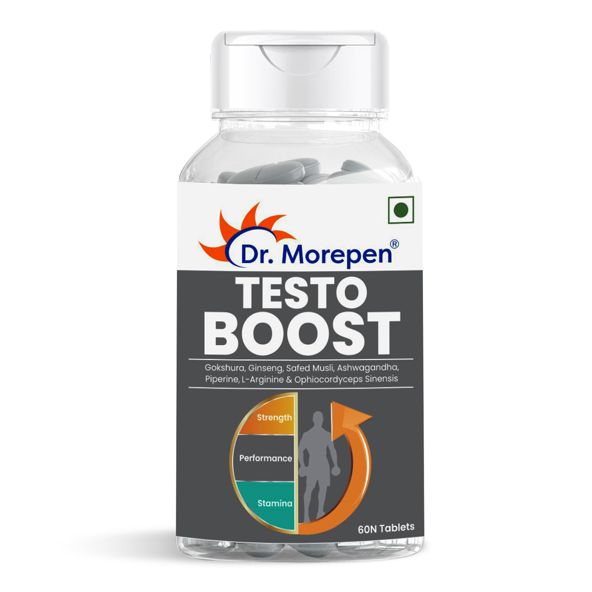MAINTAINS TESTOSTERONE LEVELS Dr. Morepen Testoboost helps maintain testosterone levels required to boost muscle strength muscle performance endurance and supports overall wellbeing.