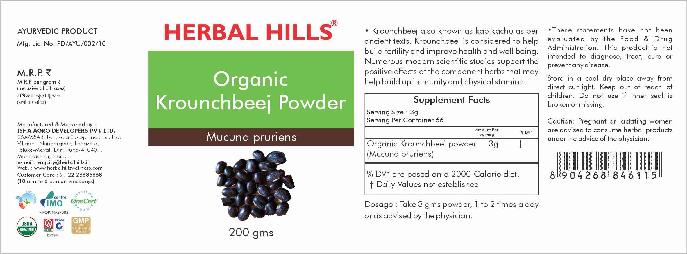 Herbal Hills Organic Konch Beej/Kaunch Beej/Krounchbeej Powder | 200 Gms