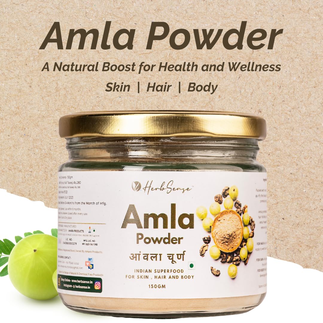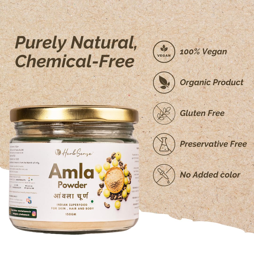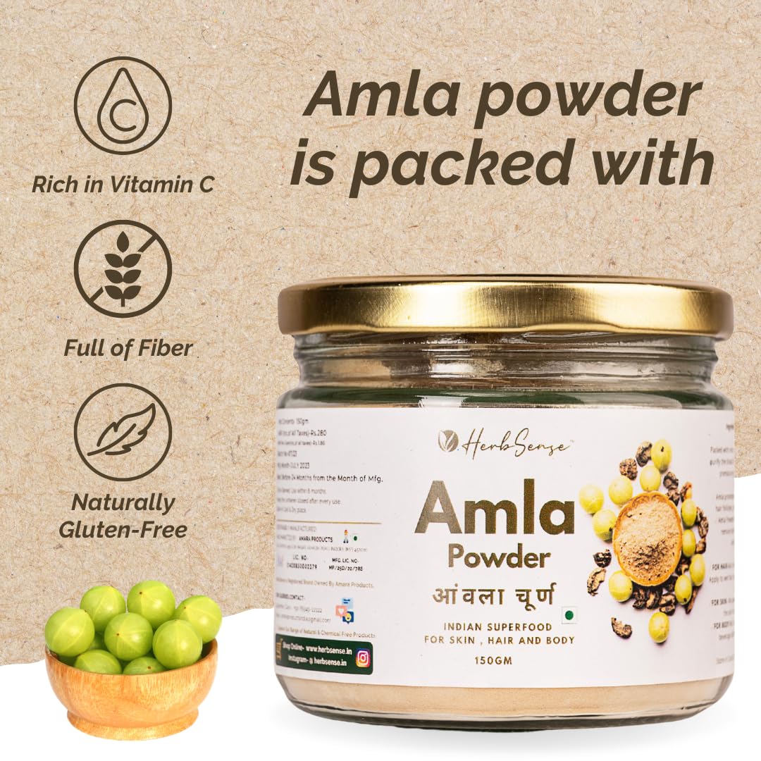 Herbsense Amla Powder/Awla Churna - Indian Superfood For Skin Hair & Diet | Face Mask Hair Care Powder | Net Contains 150 GM