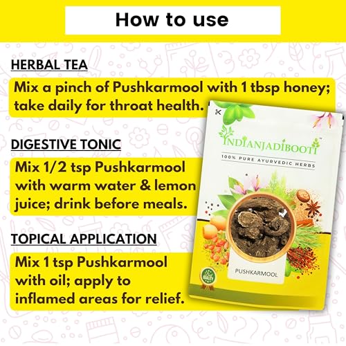 IndianJadiBooti Pushkarmool - Pushkar Mool - Orris Root - Inula Racemosa, 100 Grams Pack