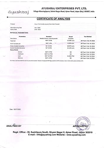 Kamdhenu Laboratories Arjun Chhal (Terminalia arjuna bark) Powder 250 Gram