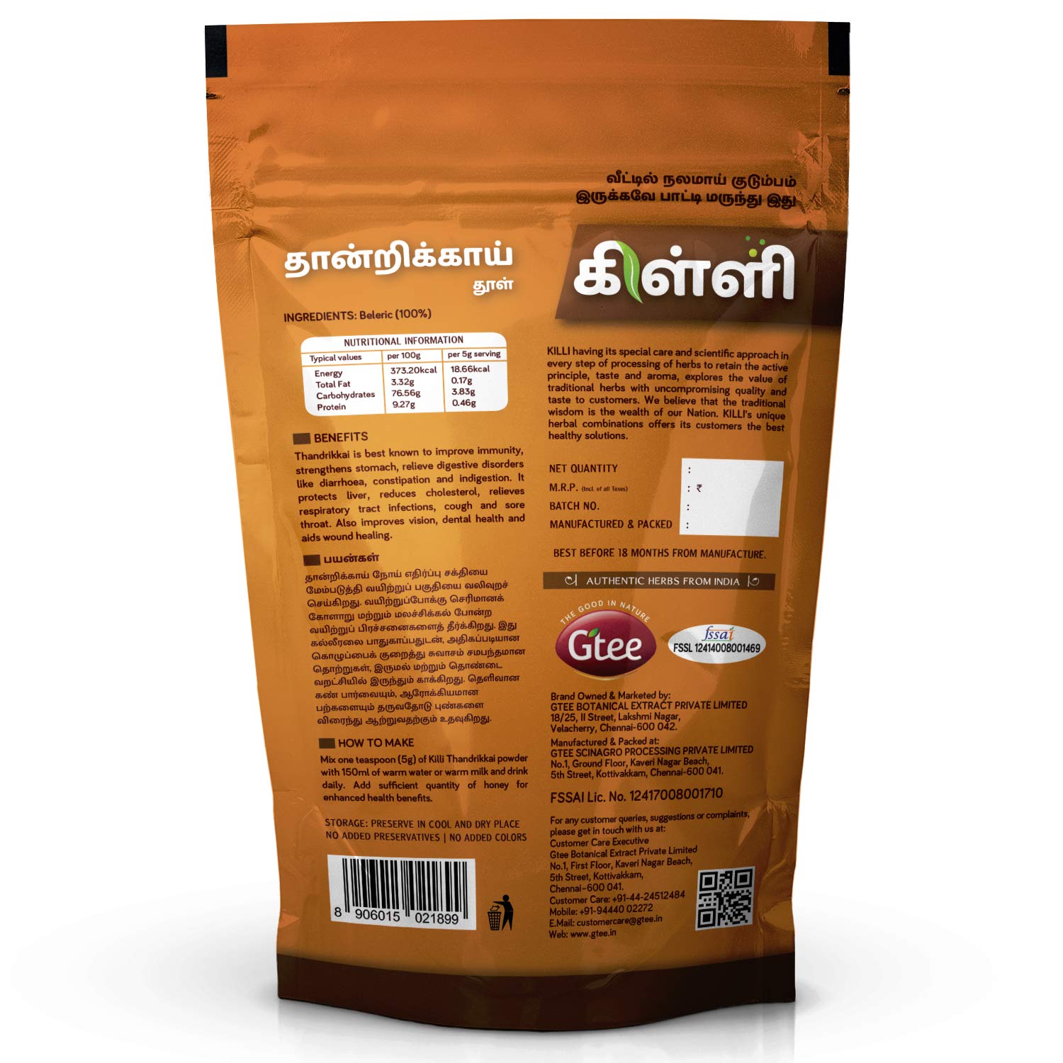 USFDA CERTIFIED - KILLI Herbs are certified by the United States Food and Drug Administration FSSAI Food Safety and Standards Authority of India HALAL India. All the herbs are grown by our farmers naturally with no added chemical fertilizers. They are cle