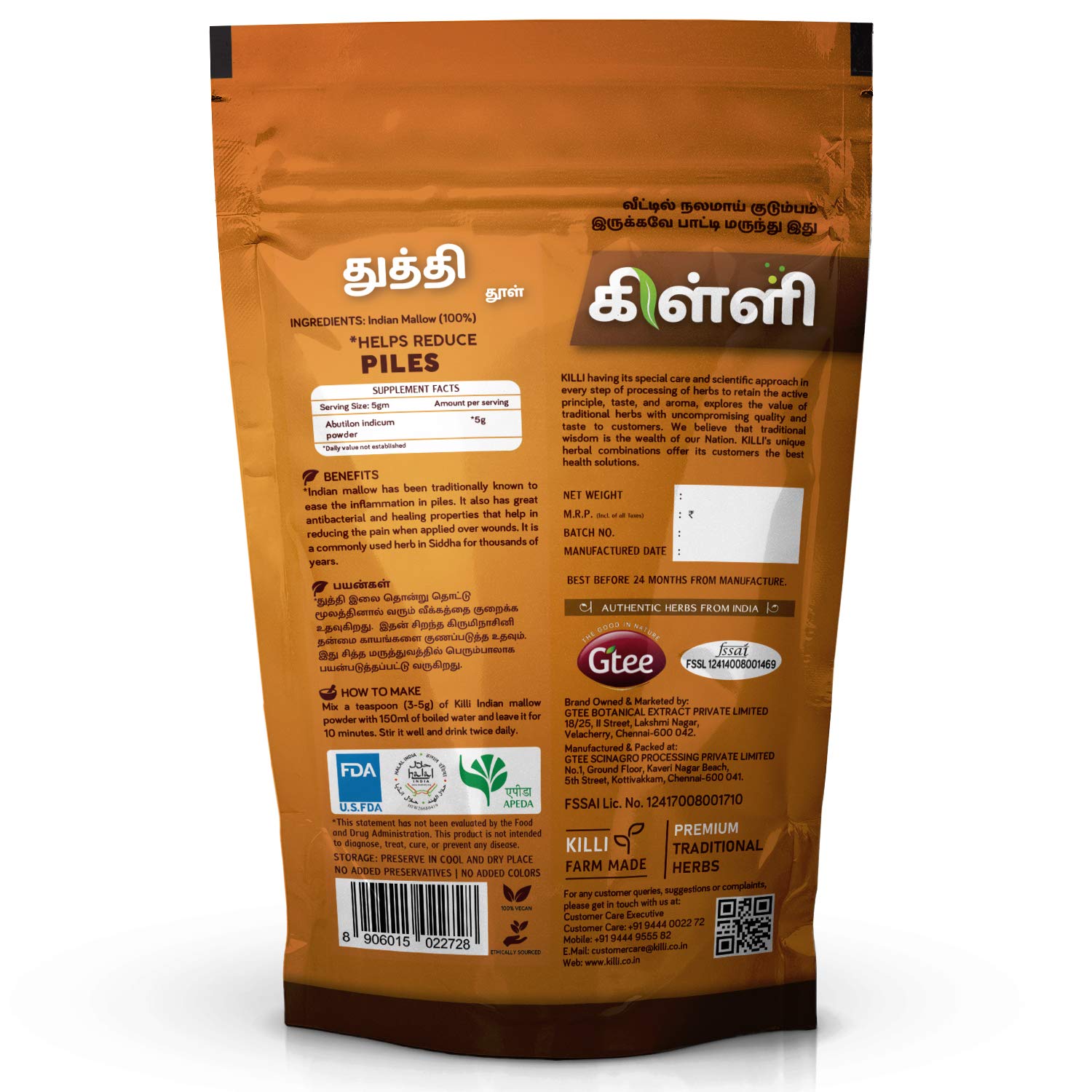 KILLI Thuthi | Indian Mallow | Abutilon indicum | Atibala Powder 100g (Pack of 3)