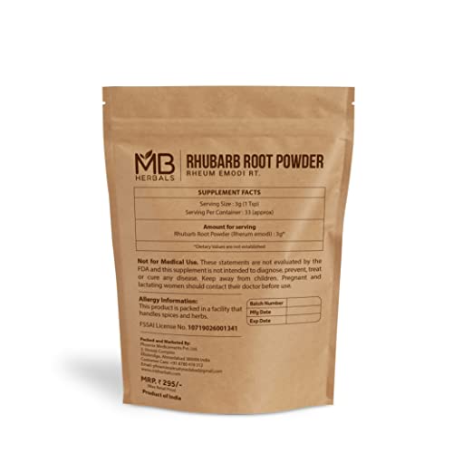 MB Herbals Rhubarb Root Powder 100g | Chinni Powder | Rheum emodi root | Indian Rhubarb