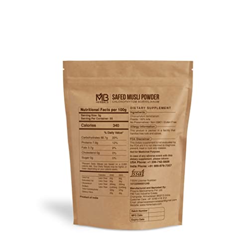 MB Herbals Safed Musli Powder 100 gram Chlorophytum borivilianum Rt. Musali, Swetha Musli
