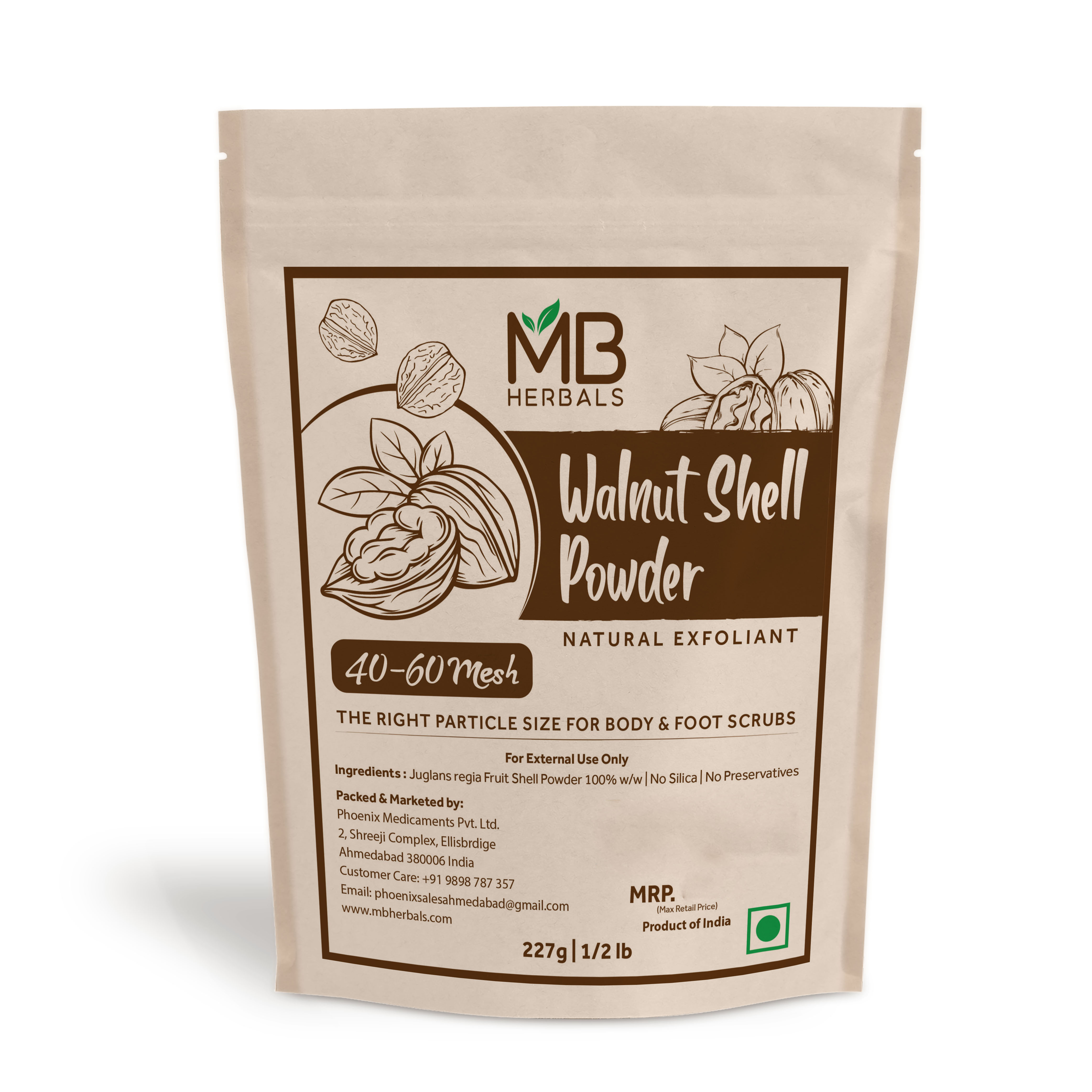 MB Herbals Walnut Shell Powder 227g | 8 oz/Half Pound | The Right Particle Size 40-60 Mesh for Natural Face Scrubs Soaps & Exfoliating Face Masks