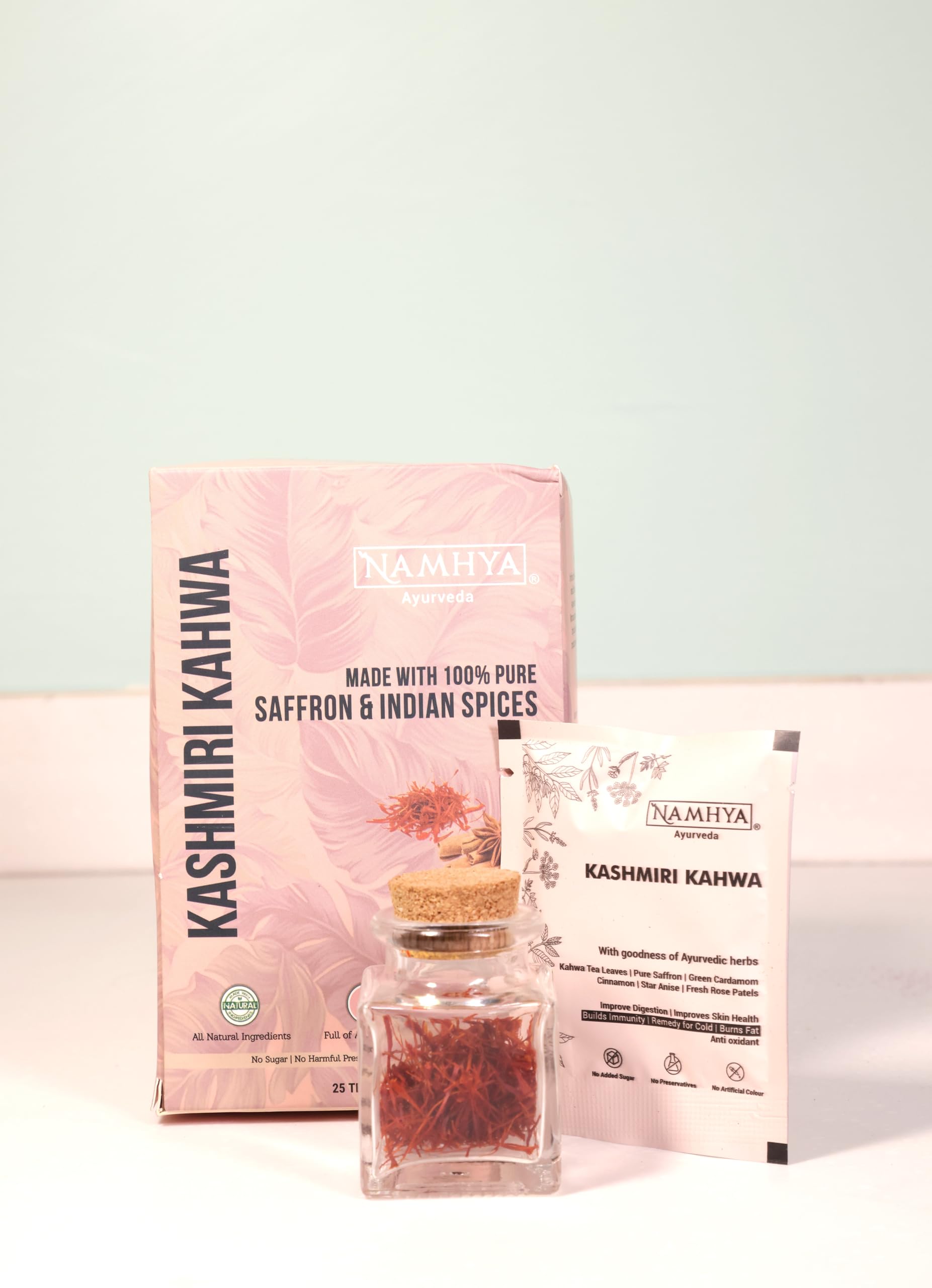 Package Contents: Kashmiri Kahwa Tea (25 Tea Bags) X 1 Kashmiri Saffron 1g X 1