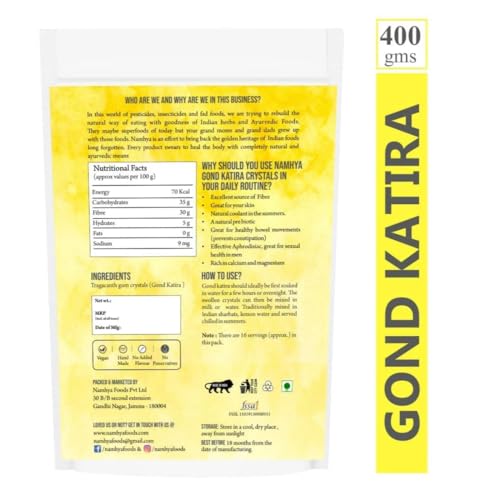 NAMHYA Premium Gond Katira (Edible Gum) | Pure Organic | 100% Natural Tragacanth Crystals 14.11 oz (400 Grams) | Rich sources of fibres | High Cooling Properties Herbal Food