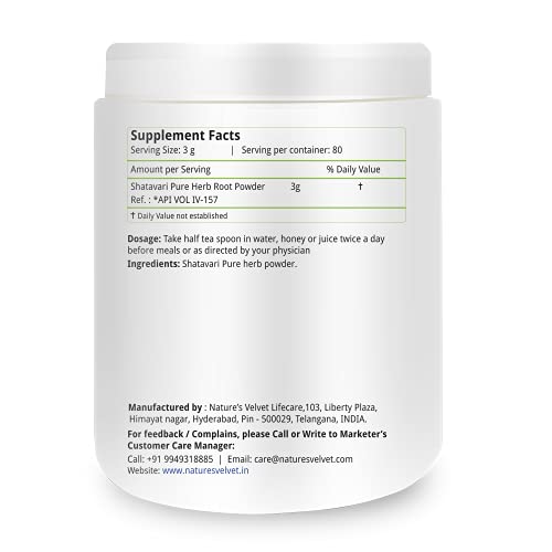 nature's velvet Shatavari Asparagus Racemosus Powder, 250 g Pack of one