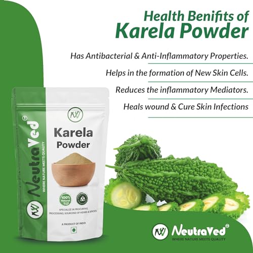NeutraVed Herbal Essential Pure Karela Powder (Bitter Melon Powder) | Food-Grade Stand-Up Zipper Pouch - 200g