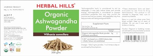 Herbal Hills Organic Ashwagandha Powder -200 gms Ashwagandha Herbal Powder