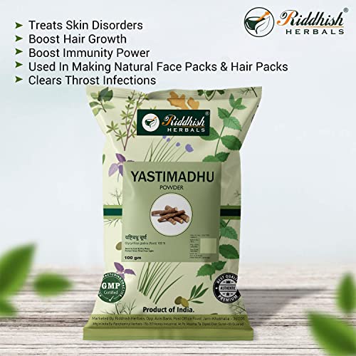 Riddhish Herbals Yastimadhu Powder (Licorice) / Mulethi/Jethimadh - Pack of 5 (Each 100g) - Traditional Ayurvedic Herb - Herbal Powder Supplement for Daily Wellness