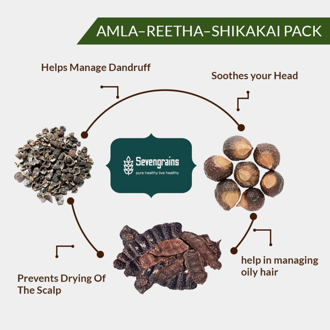 SEVENGRAINS Reetha Amla Shikakai (RAW Form)::(300+300+300) 900g