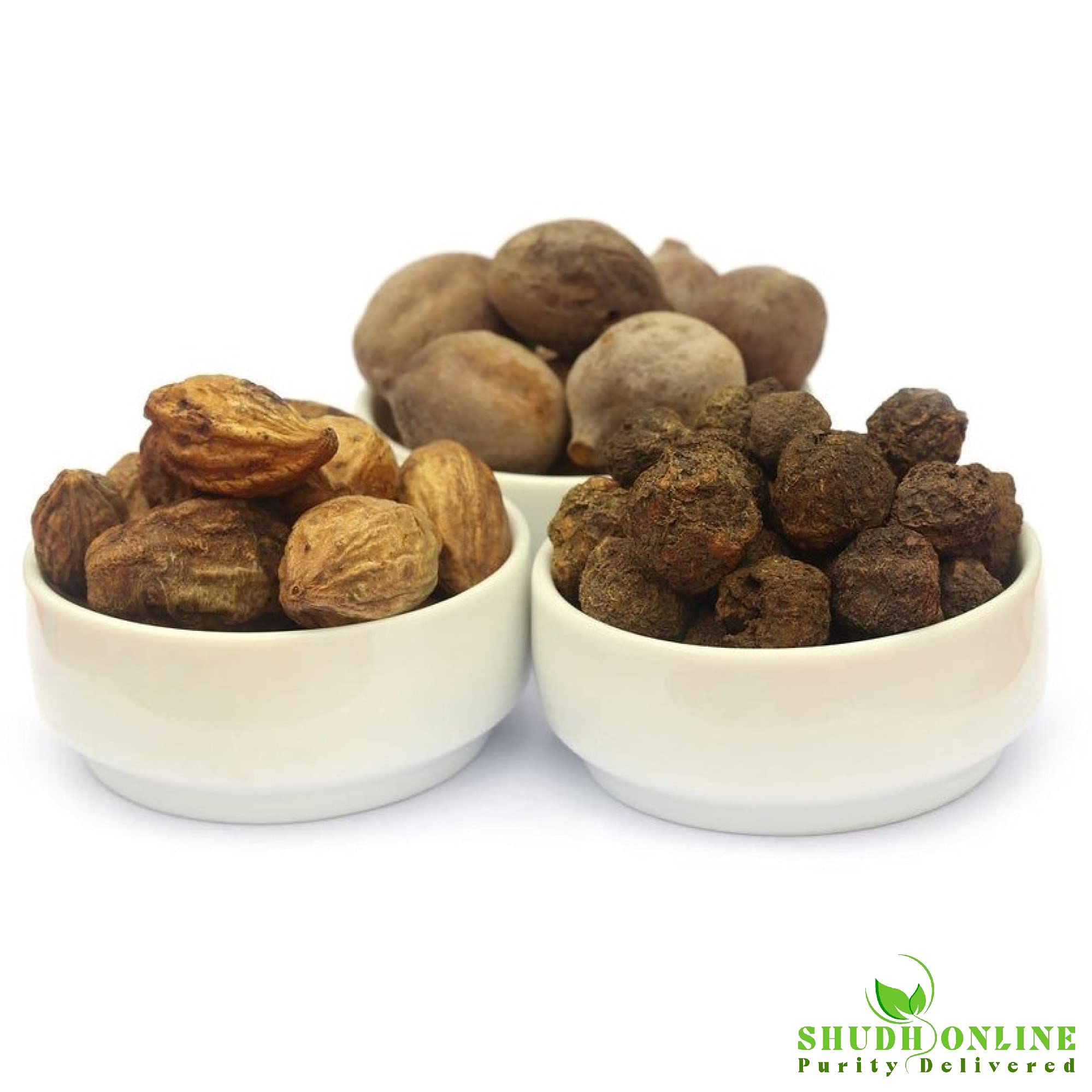 Shudh Online Dry Amla Baheda Harad combo - Triphala Raw (150 Grams - 50 gr each) 1:1:1 Ratio for Digestion Weight loss Hair growth Skin care