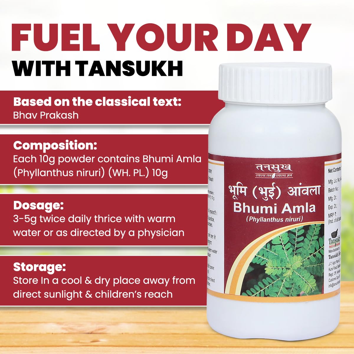 Tansukh Bhumi Amla Powder 100 grams Each Pack of 3 | Bhumyamalaki Natural Keelanelli Bhumyamalaki Powder Churan - 100 gm - Pack of 3 | Total quantity - 100 gm X 3 = 300 gm