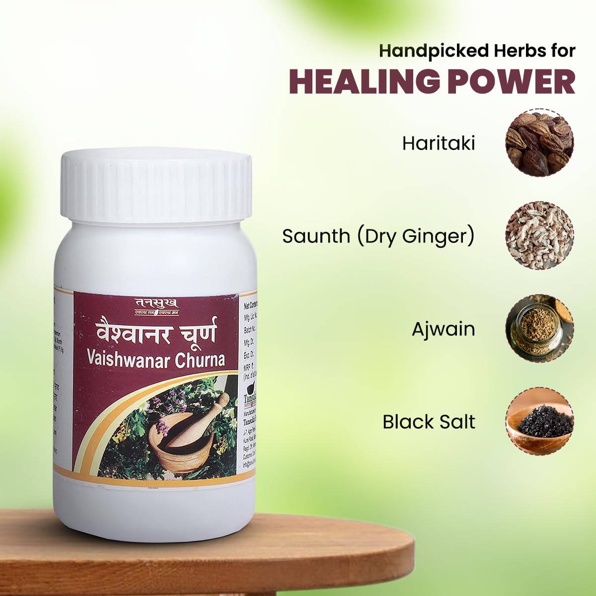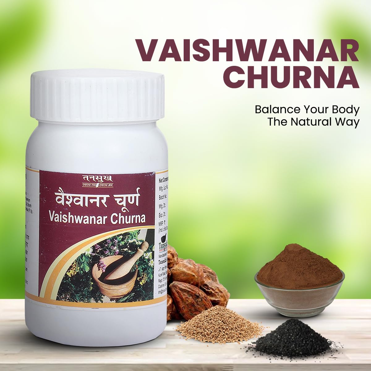 Tansukh Vaishwanar Churna - Pack of 3 60gram Each | Choornam Ayurvedic Powder | Pack of 3 = 60g X 3 = 180 Gram | Container Type - Bottle