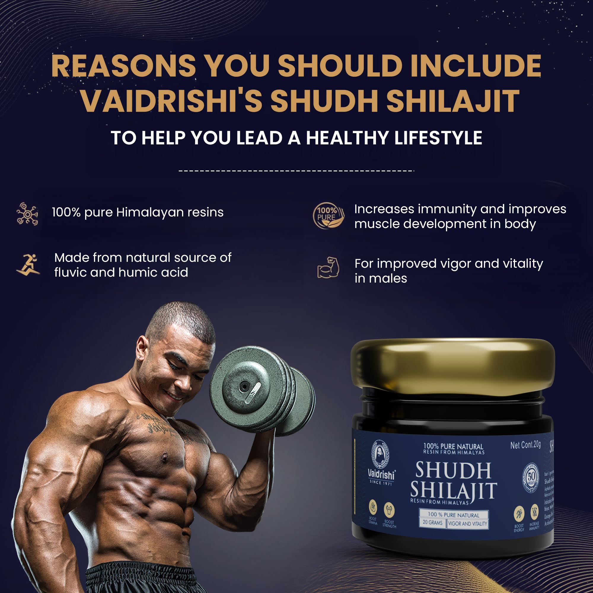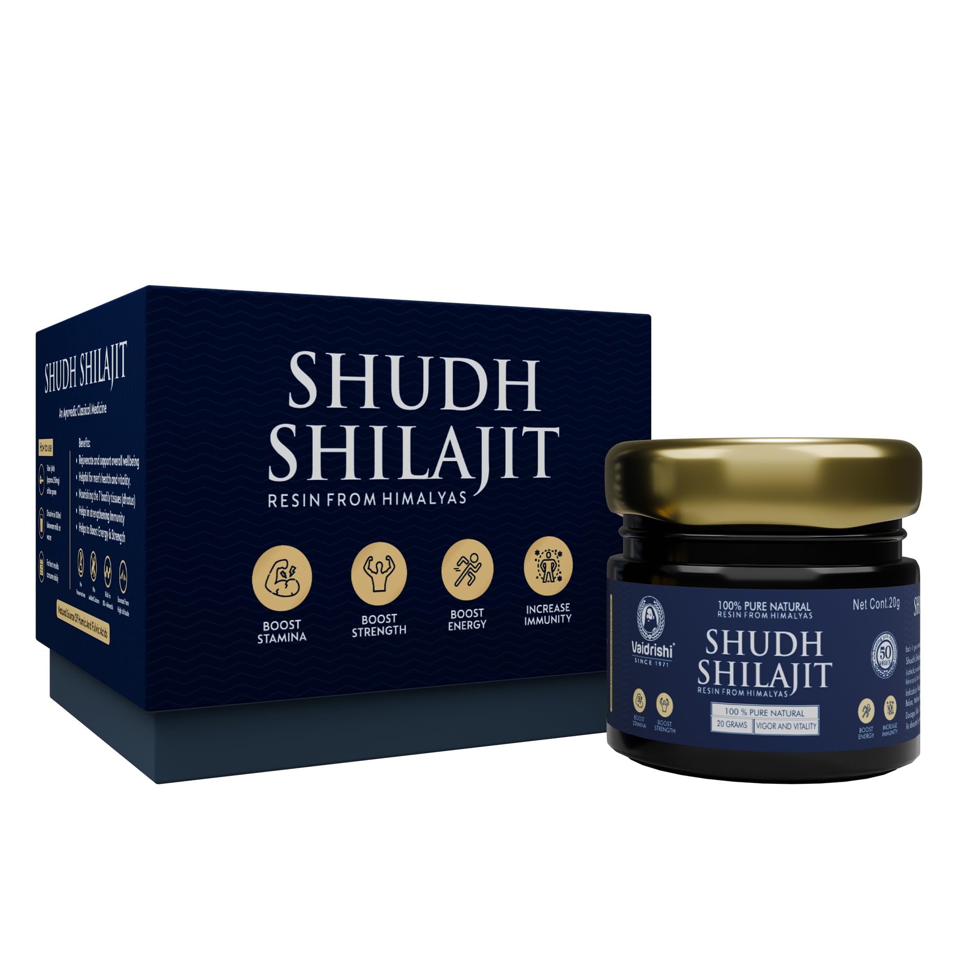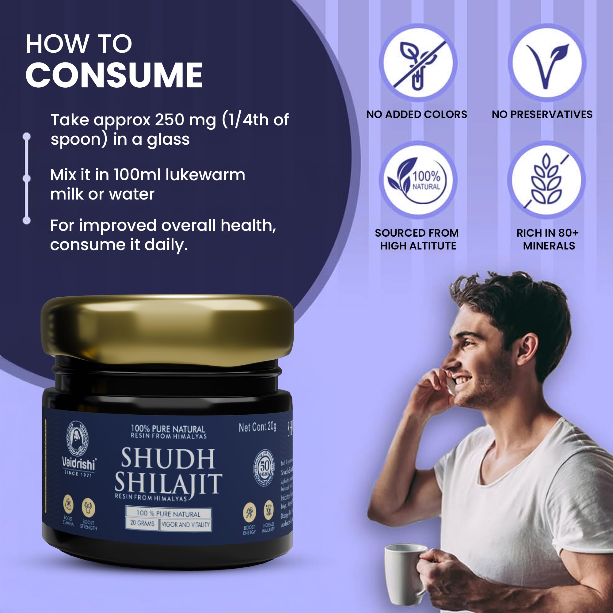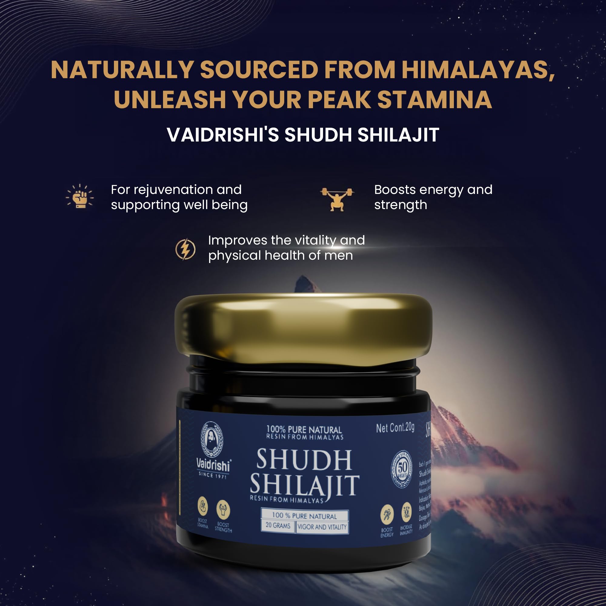 Vaidrishi Shudh Shilajit Resin from Himalayas - 100% Pure Natural (20g) | Boost Energy Stamina Strength & Immunity