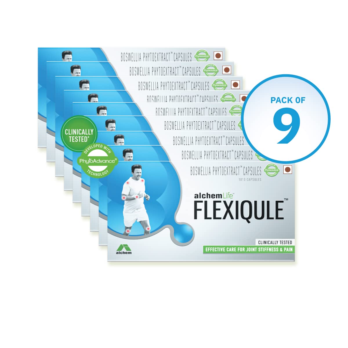 AlchemLife FlexiQule Capsule - Instant Relief from Joint Pain & Stiffness|Improved Mobility|Natural & Clinically Tested | Effective for Osteo-arthritisKneeBackHip & Shoulder Pain-Pack of 9 (10 Capsules)