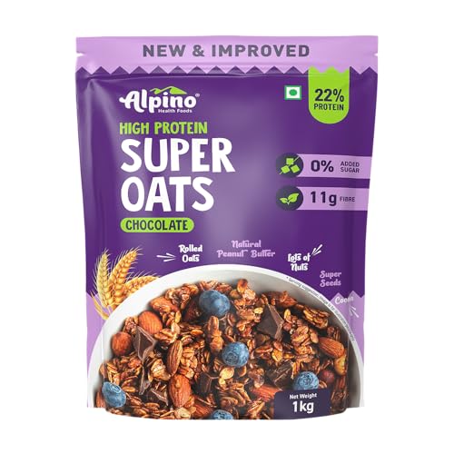 Alpino Pre-Workout High Protein & Fiber Diet Super Combo - High Protein Super Oats Chocolate 1kg, Natural Peanut Butter Crunch 1kg