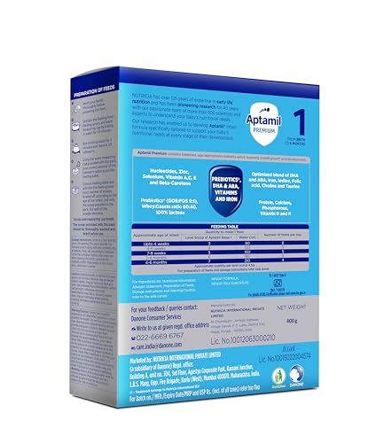 Aptamil Premium Infant Formula Milk Powder for Babies - Stage 1 (Upto 6 Months) - with Prebiotics and DHA - 400gms - Tin