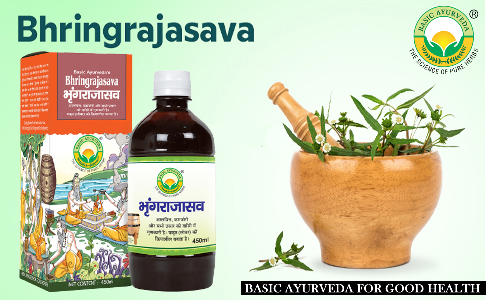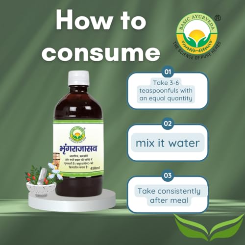 Basic Ayurveda Bhringrajasava – 450ml | Ayurvedic Liquid Tonic for Hair Growth, Liver Support, Cough & General Wellness | Herbal Fermented Supplement for Vitality & Immunity