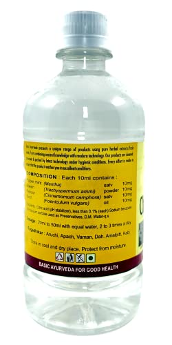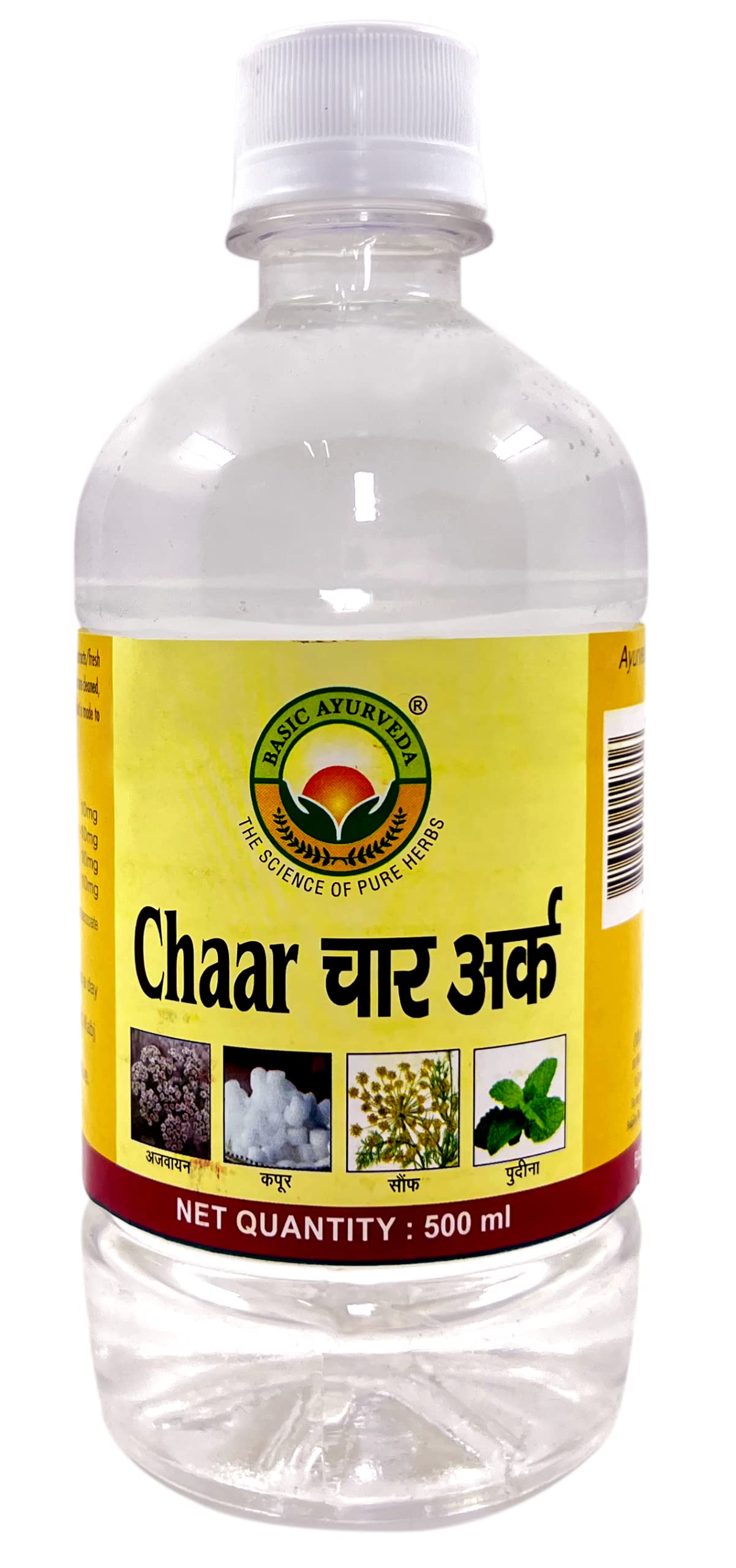 Basic Ayurveda Chaar Pure Ark (Water) – 500ml x 4 Packs | Ayurvedic Distilled Herbal Water for Digestion & Detox | Blend of Ajwain, Jeera, Saunf & Dhaniya | Natural Digestive Tonic