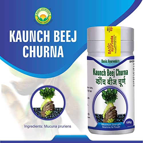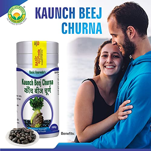 Basic Ayurveda Kaunch Beej (Mucuna pruriens) is a well-known botanical name is an Indian jadibooti the formulation comes in powder form used for the problems of general weakness and strength of males as well females.