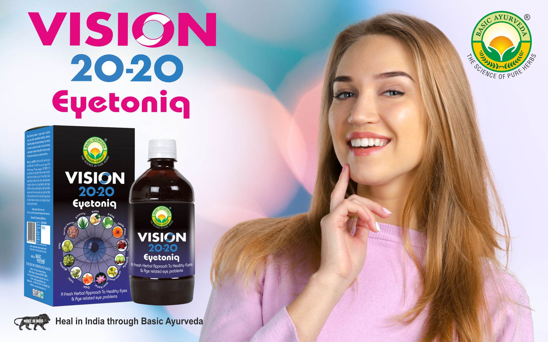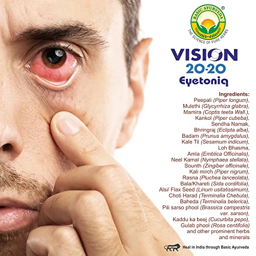 Basic Ayurveda's Vision 20-20 Eyetoniq is an ideal ayurvedic eye tonic prepared from the extract of herbs that have been classically used for eye problems from ancient times as religious herbs.