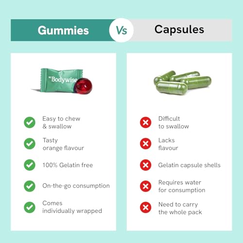 IMPROVES OVERALL WELL BEING - Bodywise Multivitamin Gummies have a tangy Orange flavour. This makes it better easy and tastier than having pills. Packed with 9 Vitamins and 3 Minerals to fulfil nutrient deficiencies in your body resulting in better streng