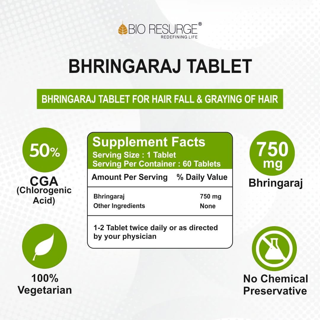 Bio Resurge Ayurvedic Bhringraj Healthy Skin Hair 60 Tablets 750 mg