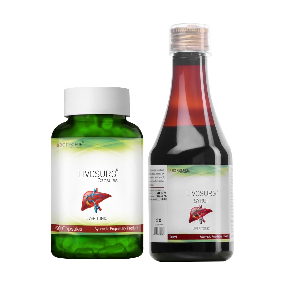 Bio Resurge Liver Detox Milk Thistle Syrup & Tablet for Men & Women | Liver Support Ayurvedic Medicine | Fatty liver (Syrup + Tablet) Pack of 2