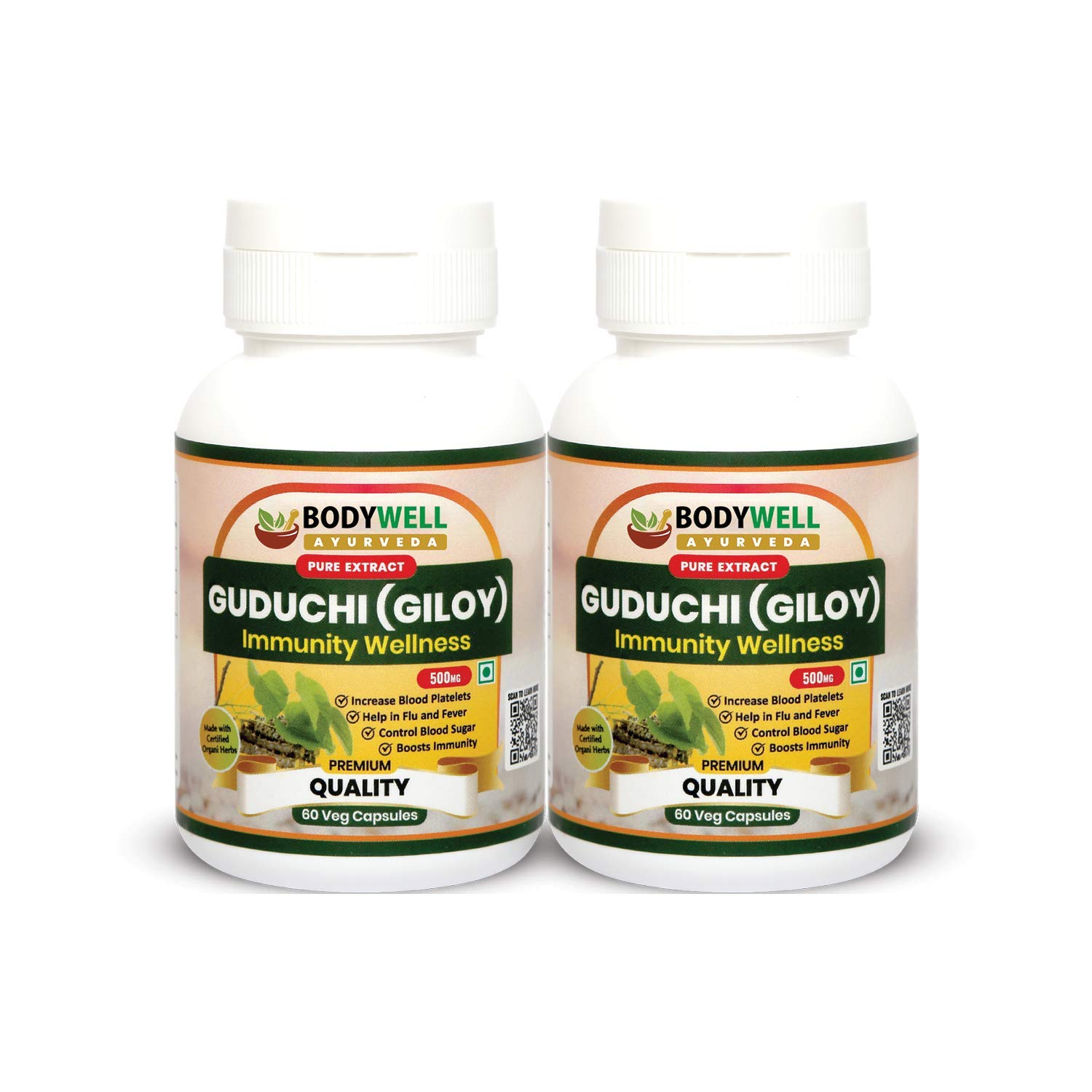 BODYWELL Giloy Pure Extract Capsule | Natural Wellness Product | 500 mg | Pack of 2 | 120 Veg. Caps
