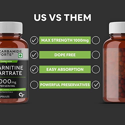 CF Carbamide Forte L Carnitine Supplement 1000mg Capsules for Men & Women | Pre Workout Supplement -Veg Capsules 60 Count