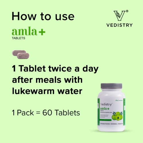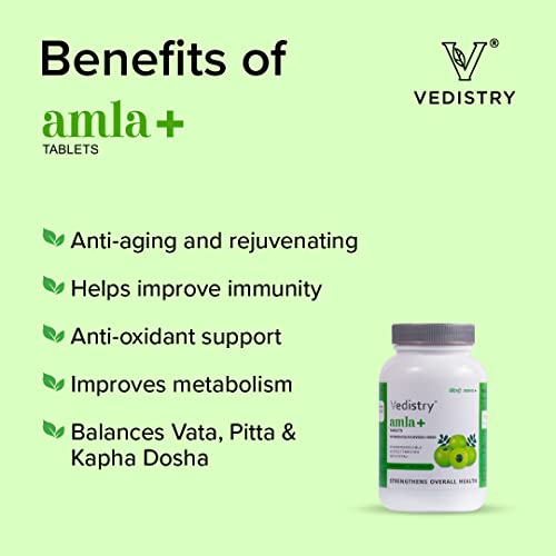 Charak Vedistry Amla+ With Piperine,Promote Skin & Hair Health,Anti-Oxidant & Anti-Aging,Boosts Immunity,100% Pure Herbs Used,Rich In Vitamin C,Digestion Tablet (60 Tablet-Pack Of 1)
