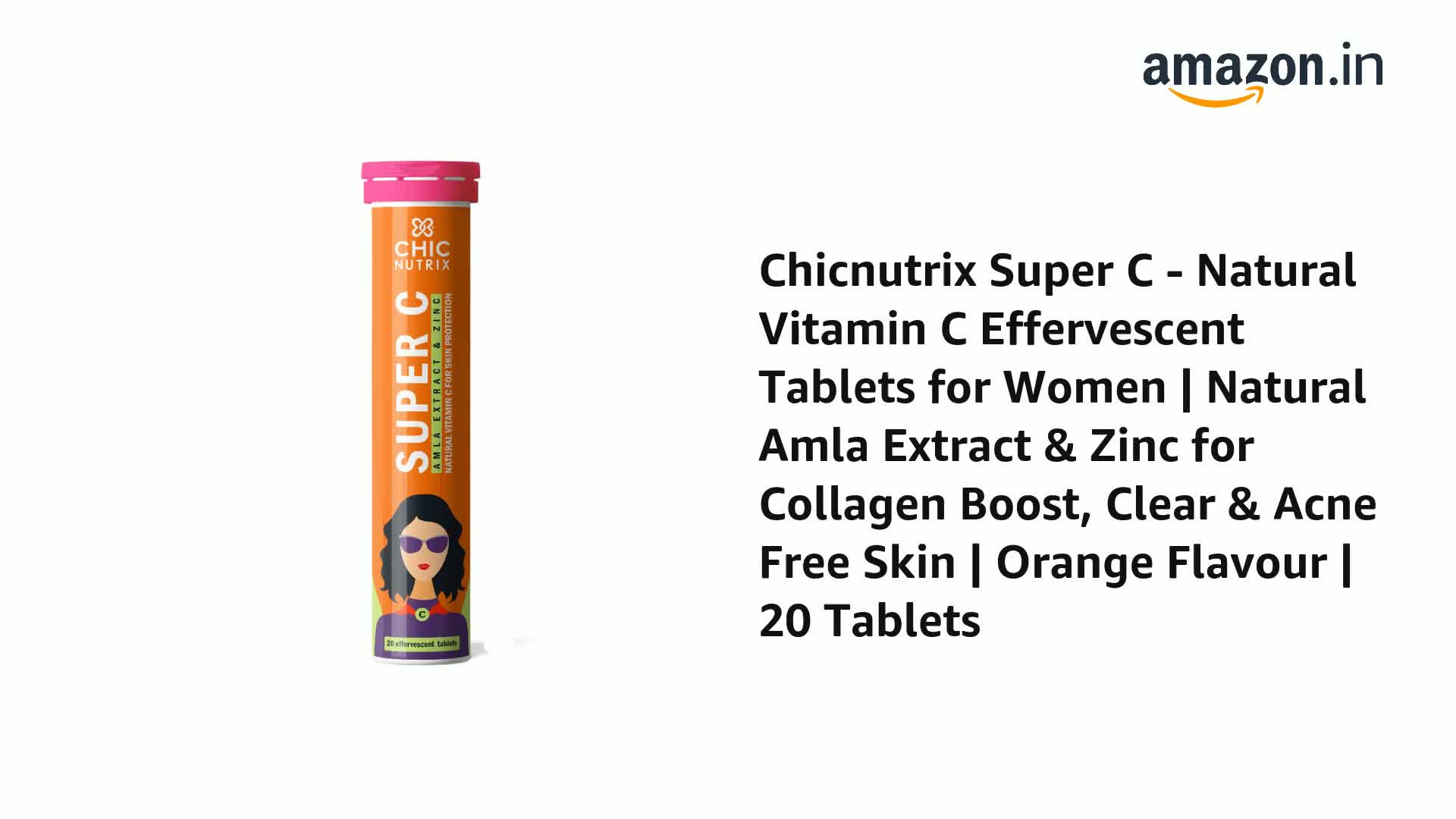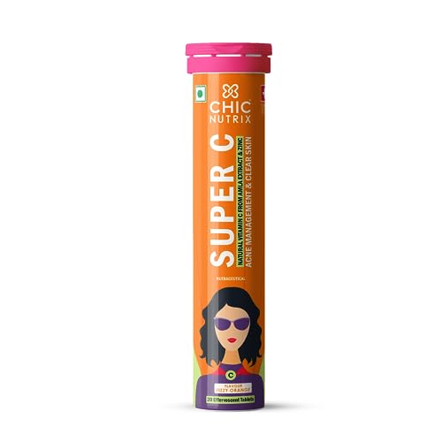 Chicnutrix Super C - Natural Vitamin C & Zinc for Clear & Acne Free Skin | 1000mg Amla Extracts|For Women & All skin types| Orange Flavour | 20 Effervescent Tablets