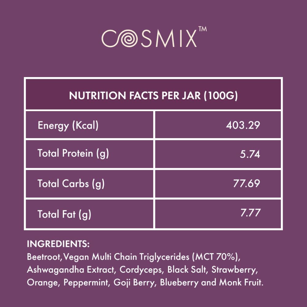 Cosmix Pure Plant Pre-Workout|For Caffeine-Free Energy&Endurance|For Muscle Recovery|60G (50 Servings)|Beetroot Nitrates&Coconut Mcts|No Preservatives/Added Sugar|Vegan|200G(Pack Of 1)Powder