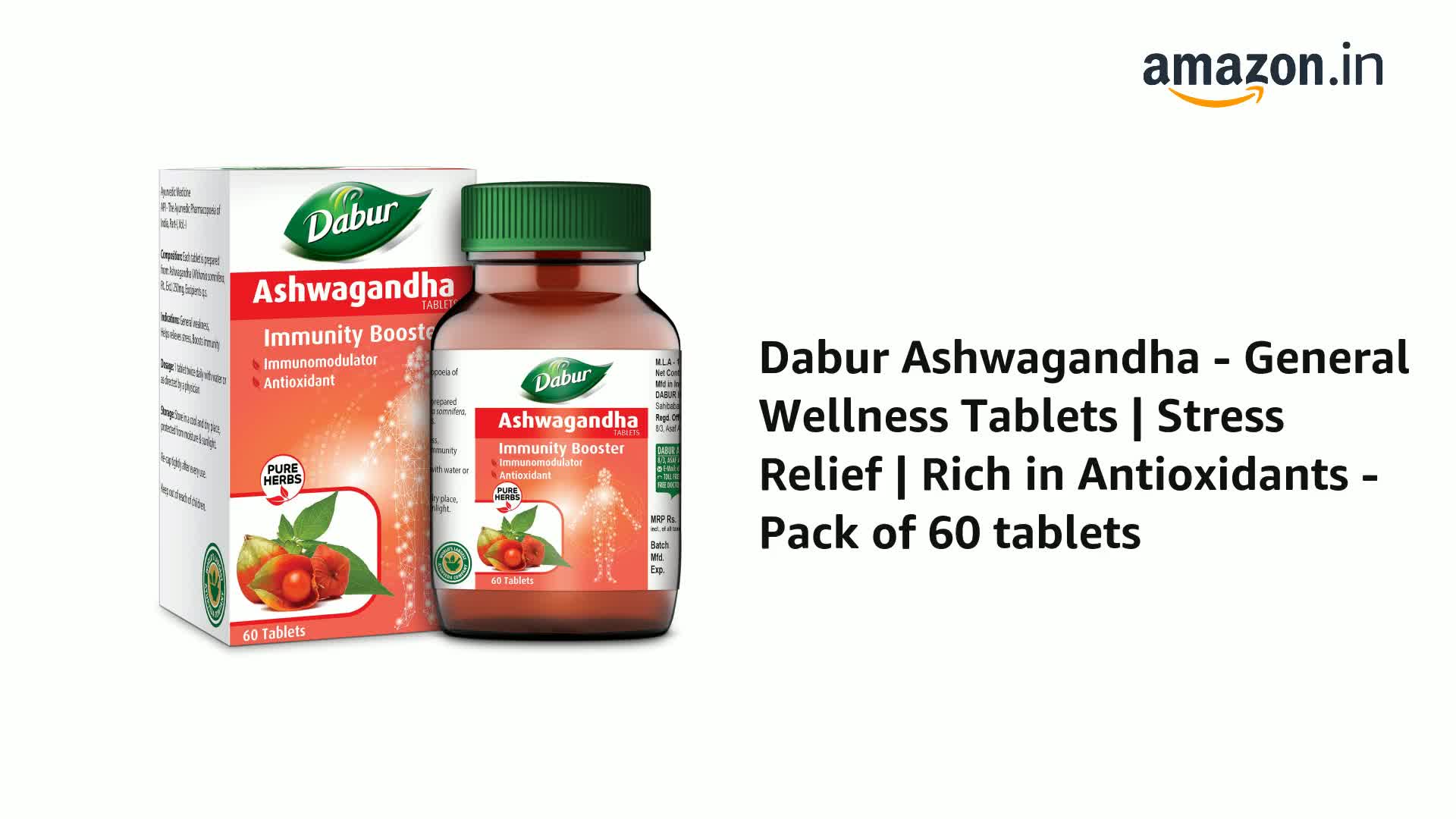 Dabur Ashwagandha Tablets - 60 tabs | General Wellness Tablets | Stress Relief | Rich in Antioxidants | Immunity Booster | Rich in Antioxidants | Rejuvenates Body