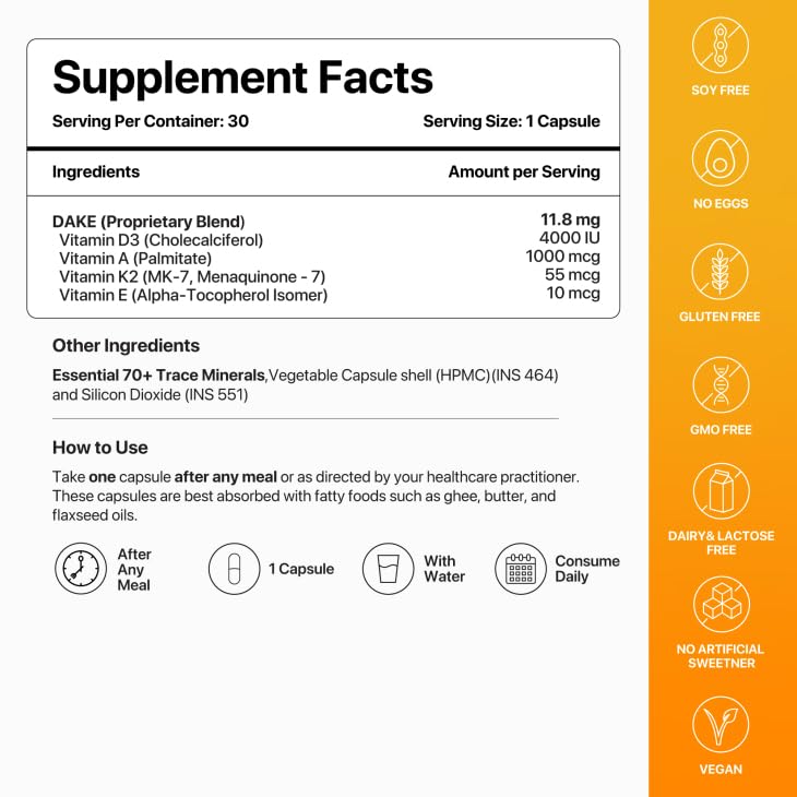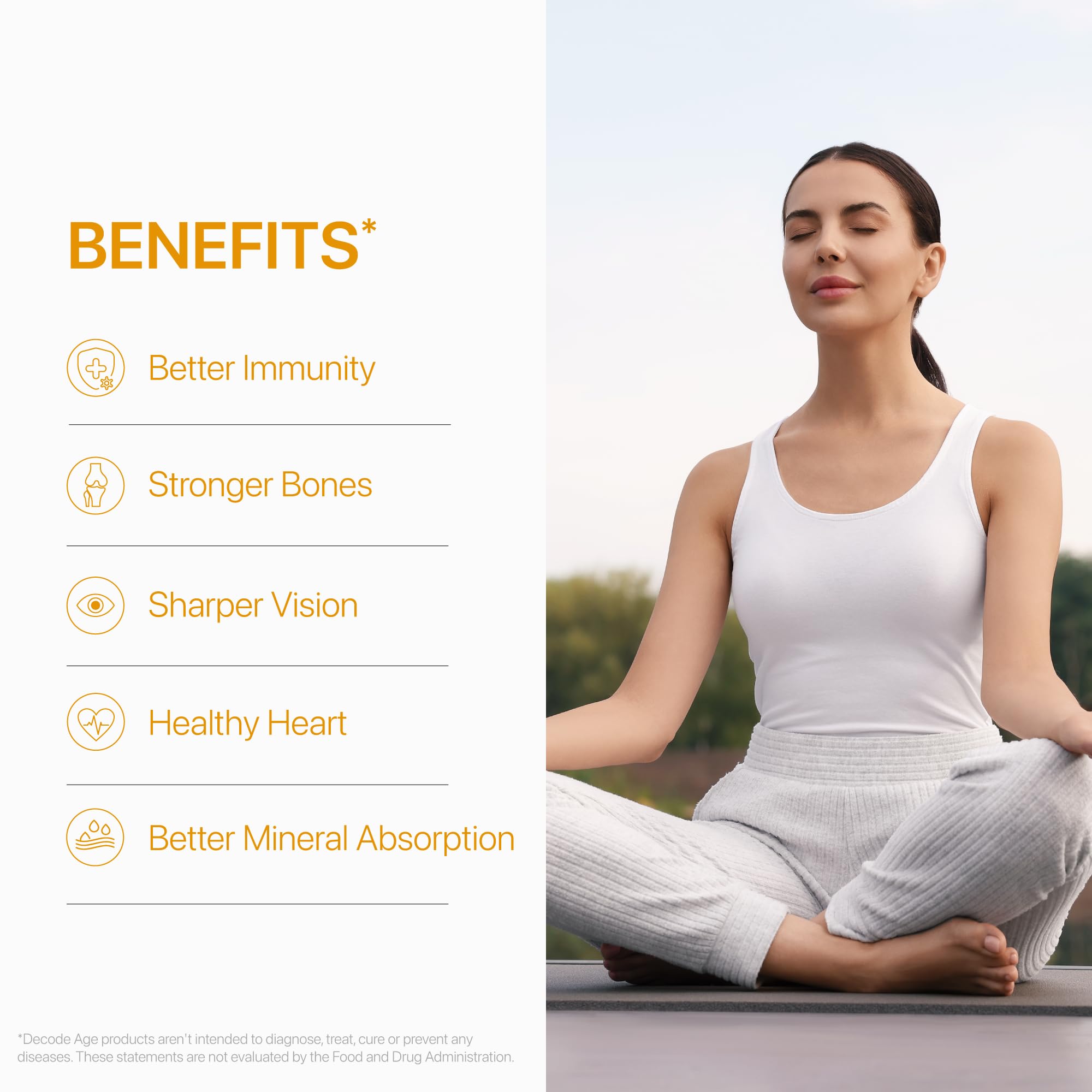 Decode Age DAKE® Supplement | Multivitamin Supplement | Supports Vision Immunity Bone Heart and Skin Health | Vitamin D3 K2 (MK7) A & E | 30 Capsules Vegan