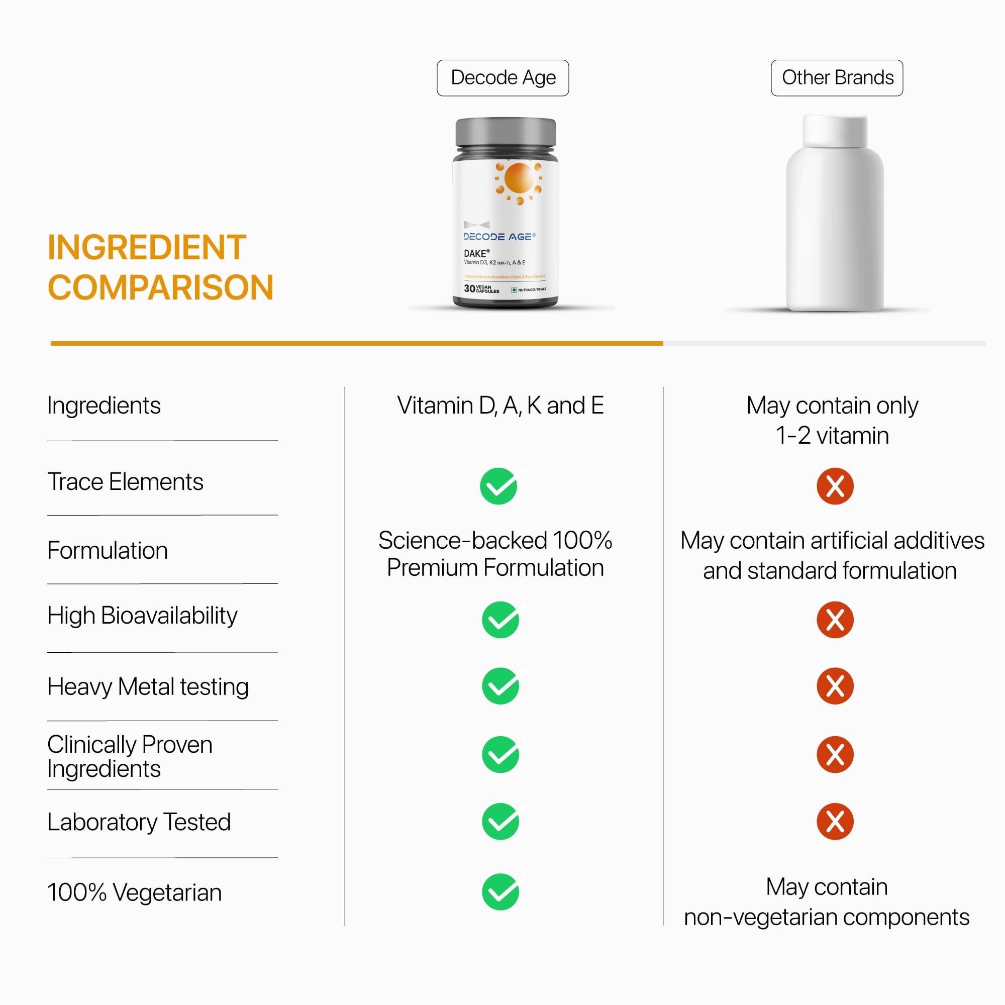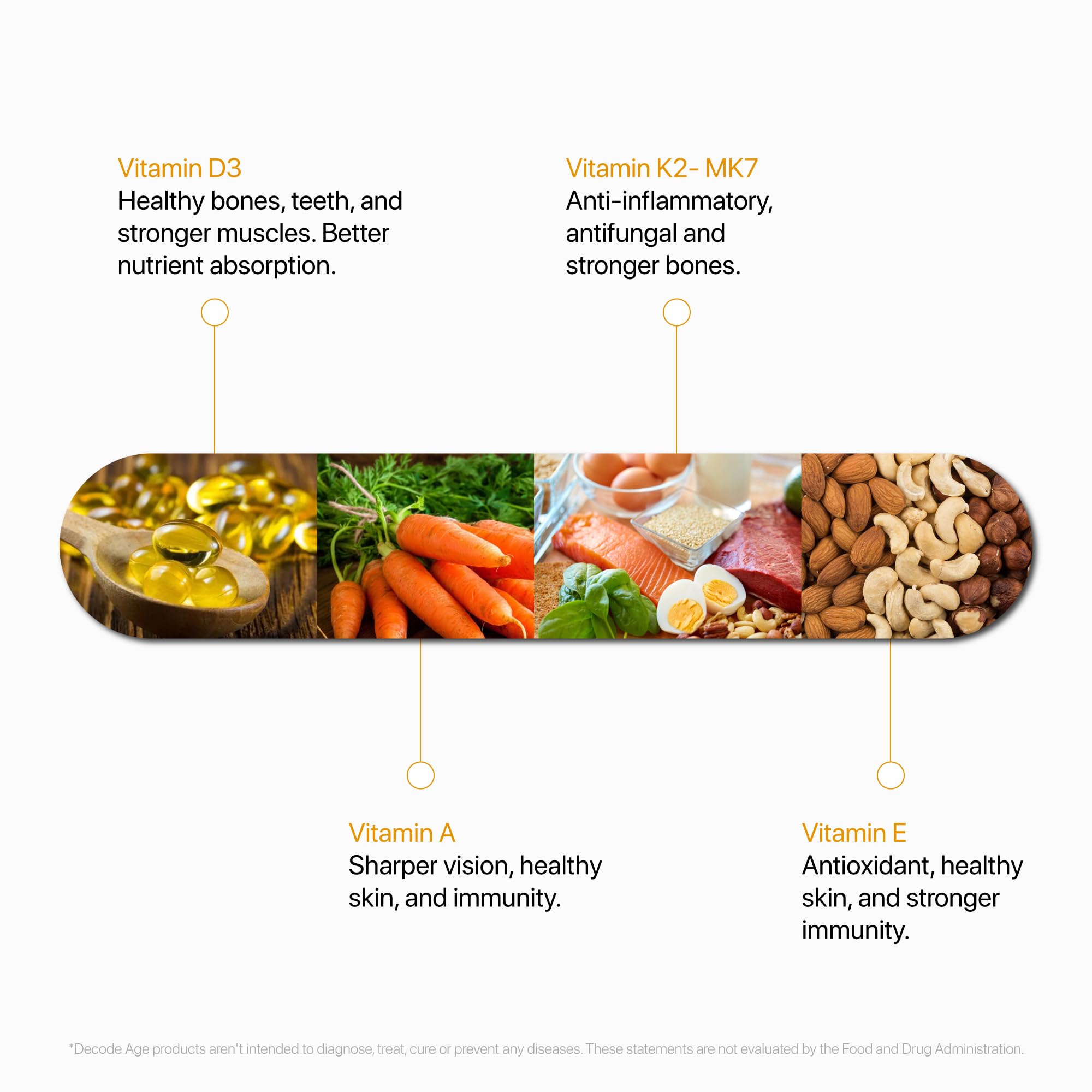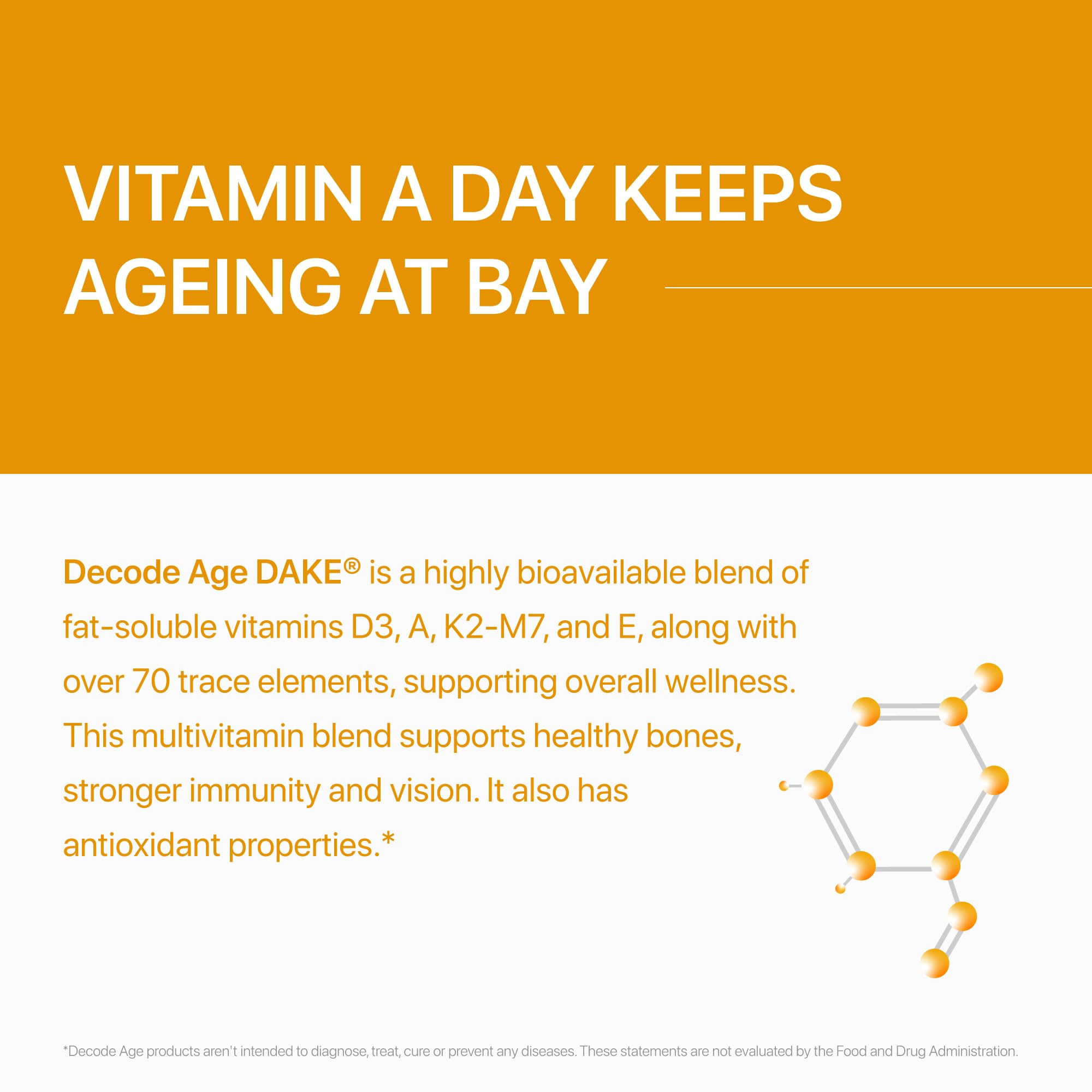 Multivitamin Blend Decode Age DAKE is a powerful blend of vitamins A D E and K designed to support healthy bones immunity and overall vitality as you age.