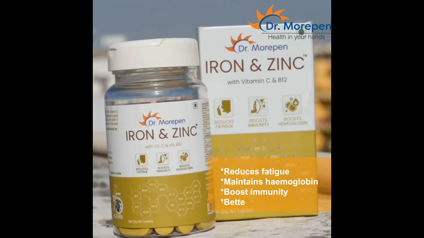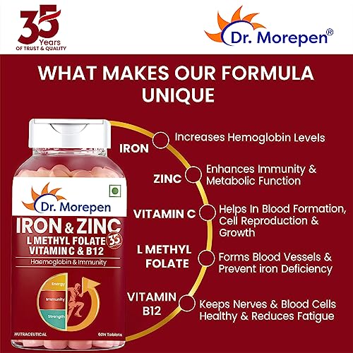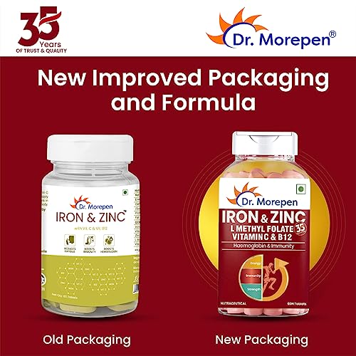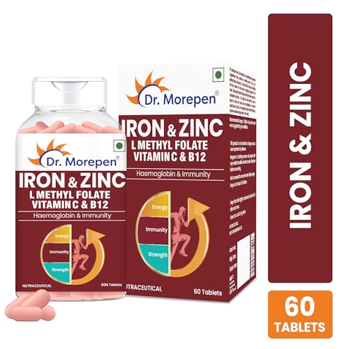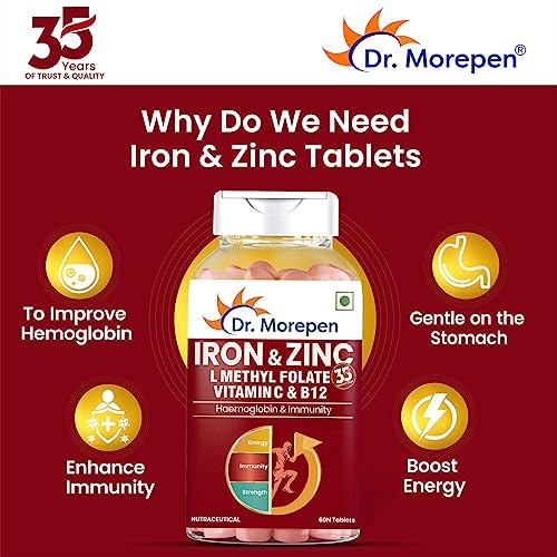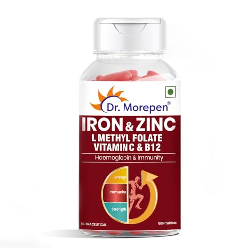 DR. MOREPEN Iron & Zinc Tablets | Enriched with Iron, Zinc, Vitamin C & B12 | Natural & Safe for Men and Women | 60 Veg Tablets