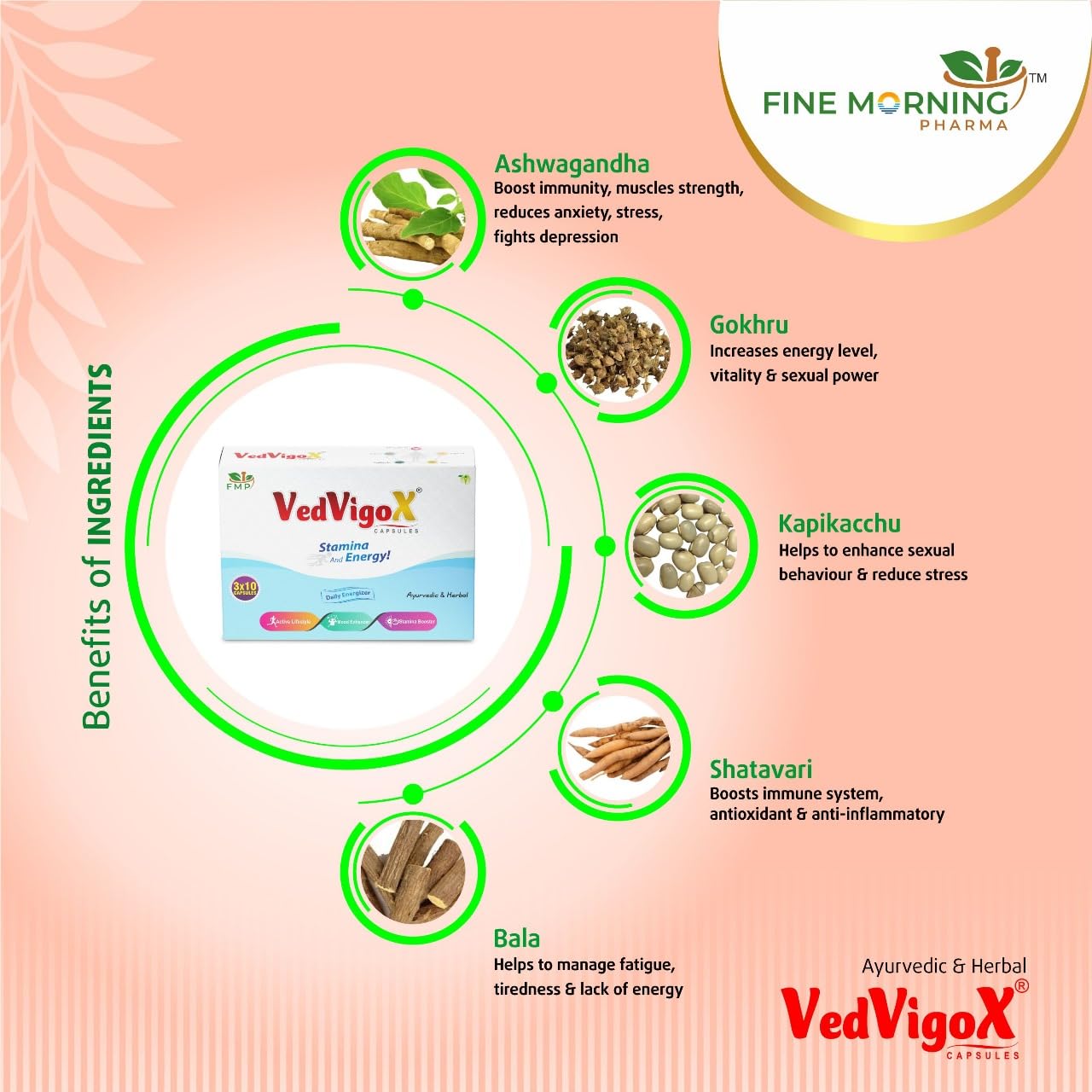 Ingredients- Ashwagandha Gokhru Kapikacchu Shatavari Bala