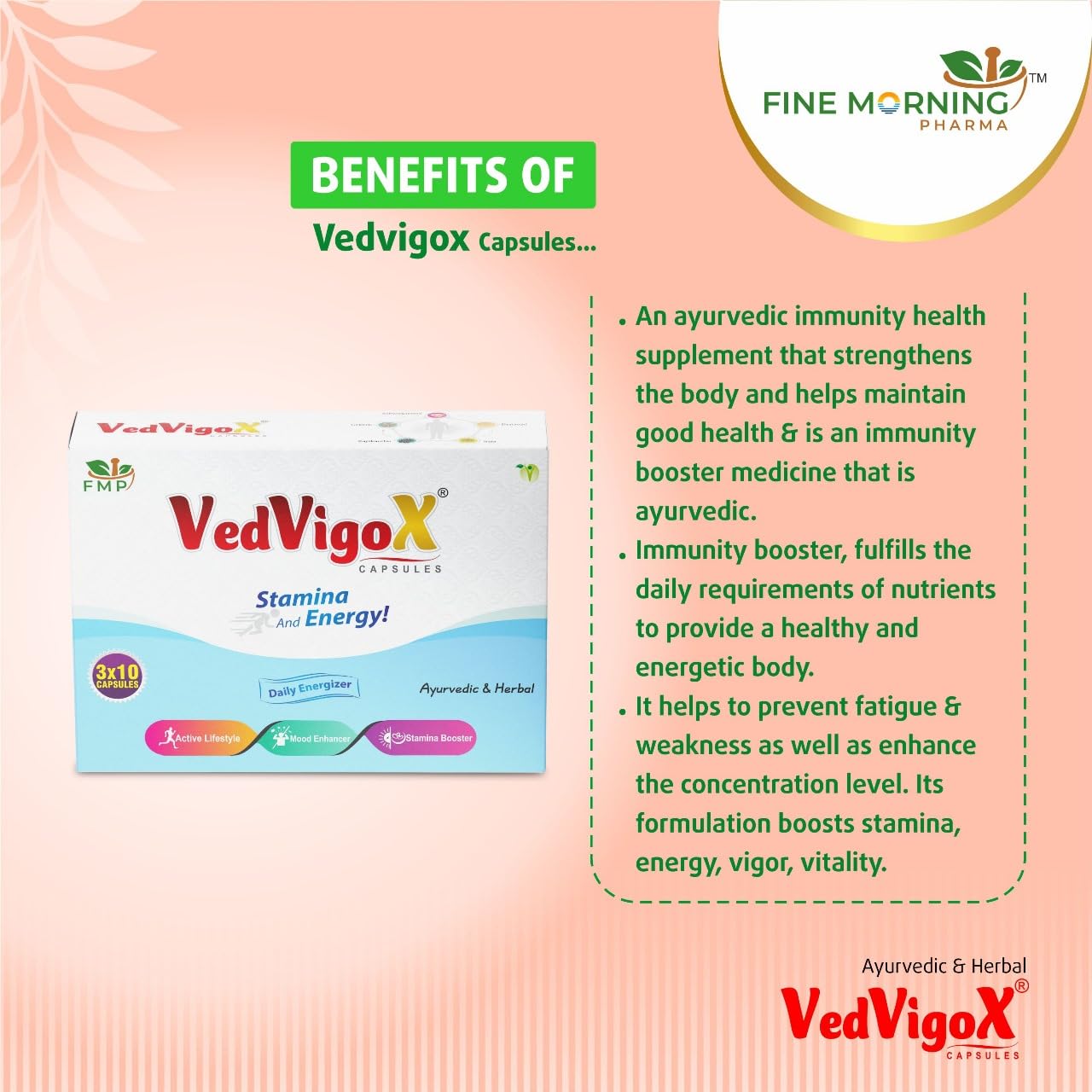 Fine Morning Pharma | Ayurvedic and Herbal | Combo Pack Of 2 VedVigoX Capsules & Anafine Cream Helps to boost Immunity & Reduce Inflammation Relief From Cuts and Burns Suitable for Adults.