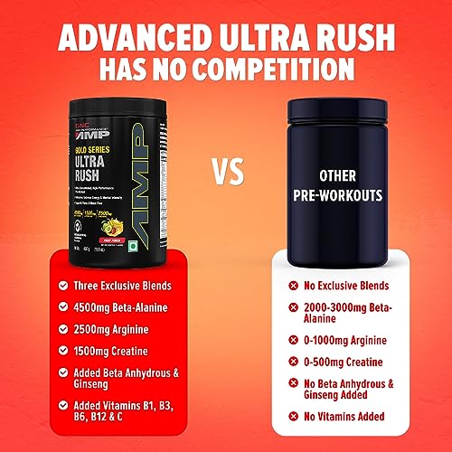 SUPERIOR PRE-WORKOUT WITH 3 UNIQUE BLENDS: GNC AMP Ultra Rush (30 Servings) is specifically formulated with three exclusive blends including Power & Performance Matrix N.O. Pump Accelerator and Energy & Mental Intensity which gives your body an insane lev