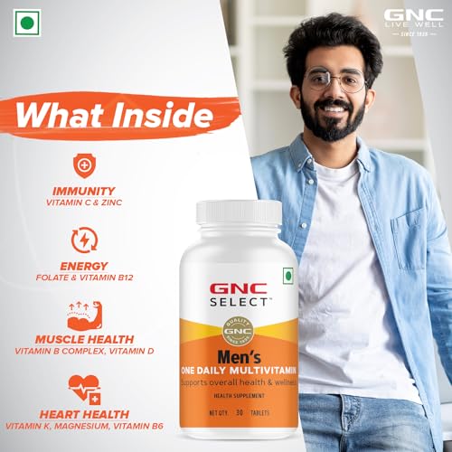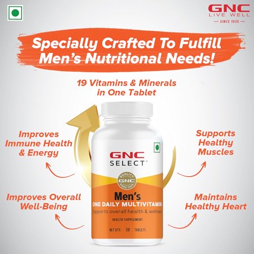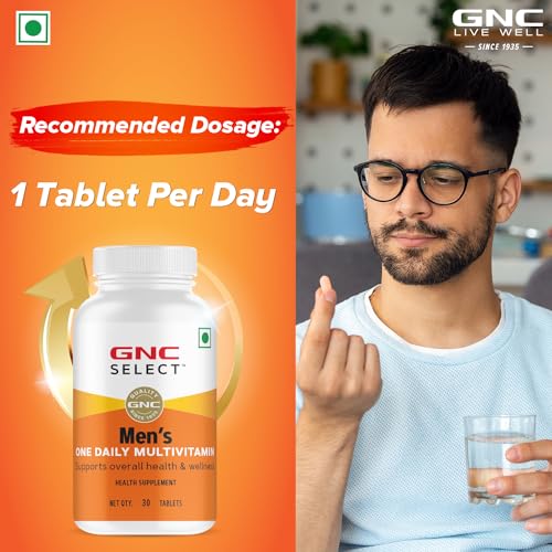 GNC Men's One Daily Veg Multivitamin |30 Tablets| Improves Muscle Performance | Enhances Immunity | With Vitamin A, C, E, and D3| Imported| Formulated In USA