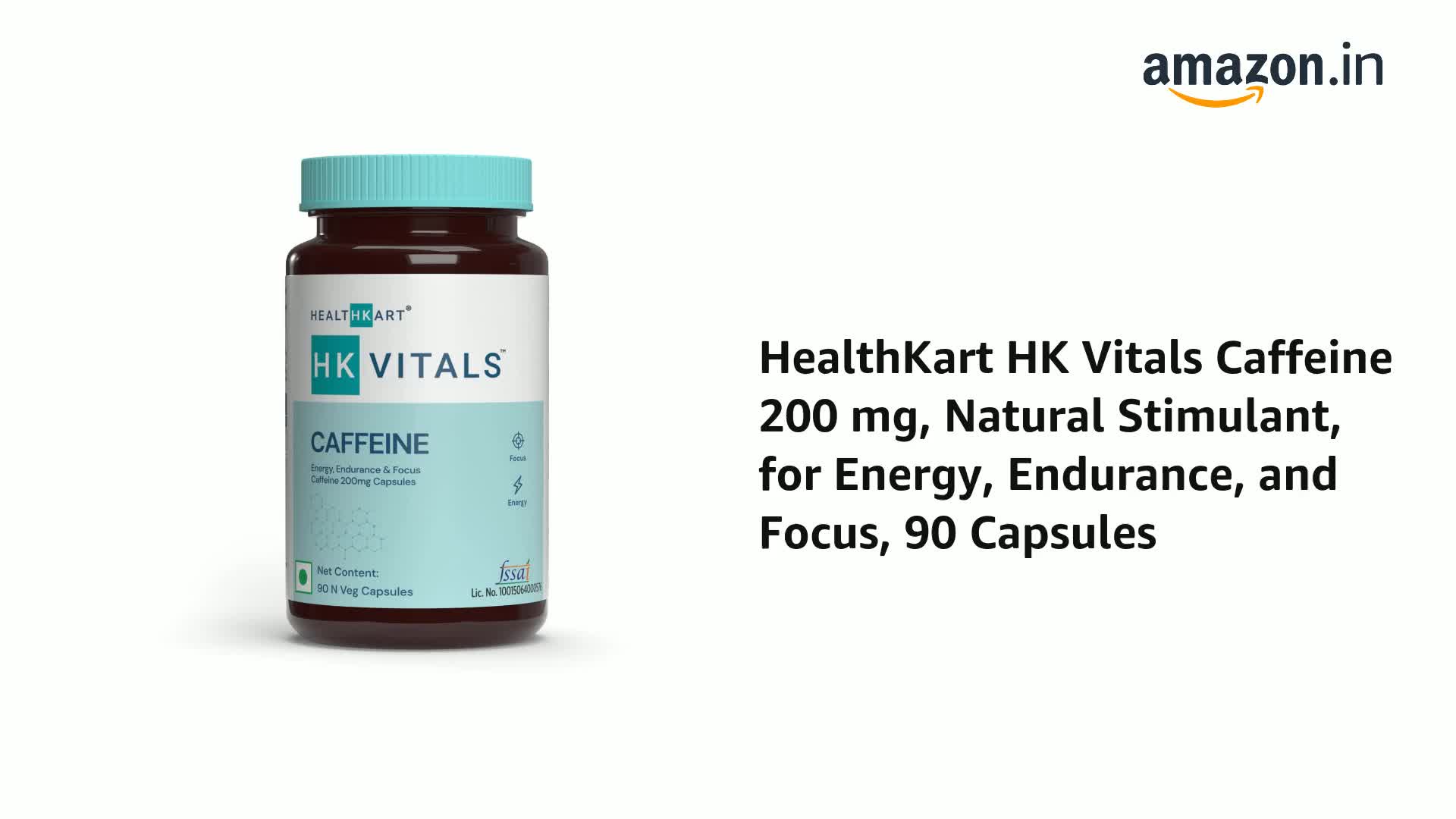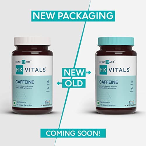 HealthKart HK Vitals Caffeine 200 mg Natural Stimulant for Energy Endurance and Focus 90 Caps.