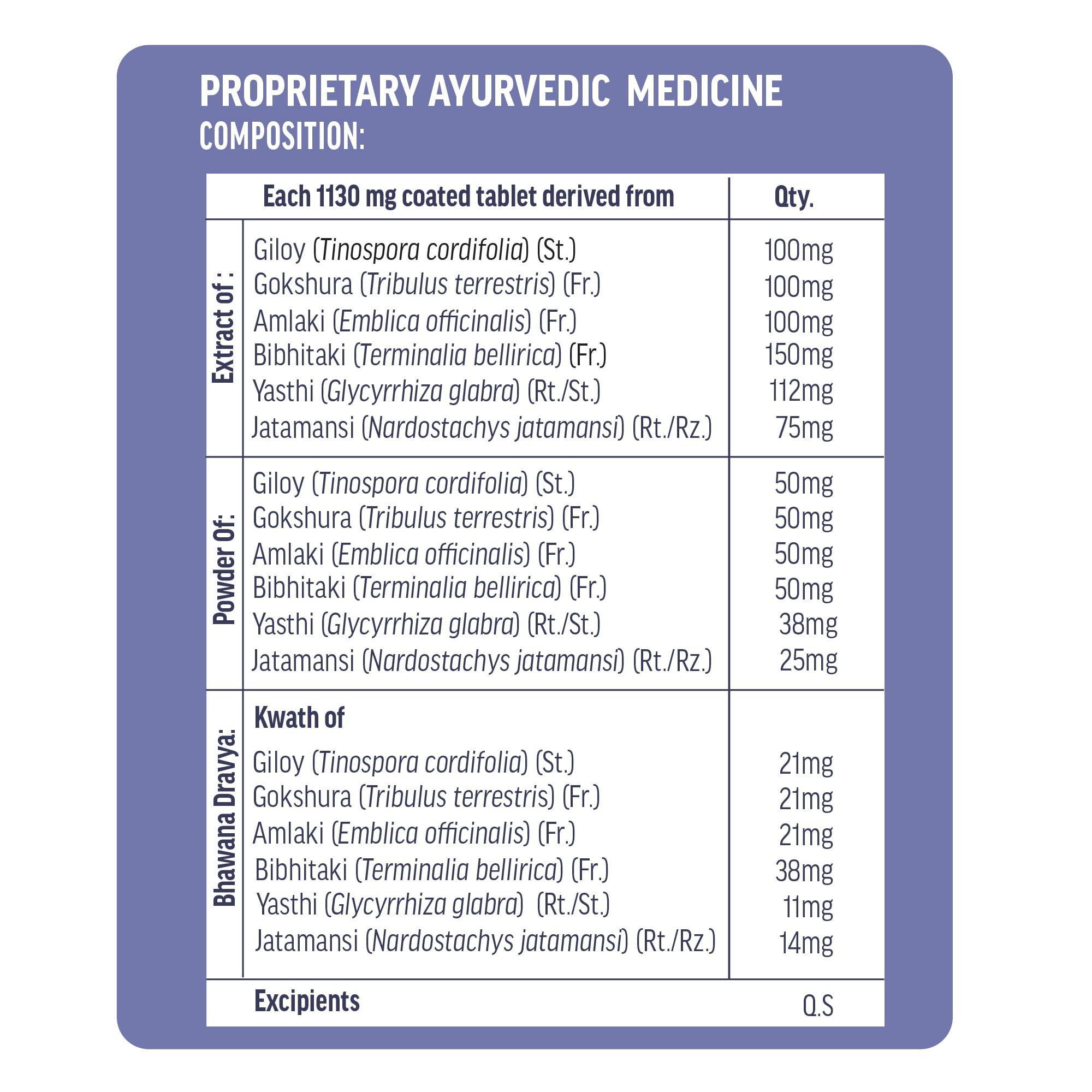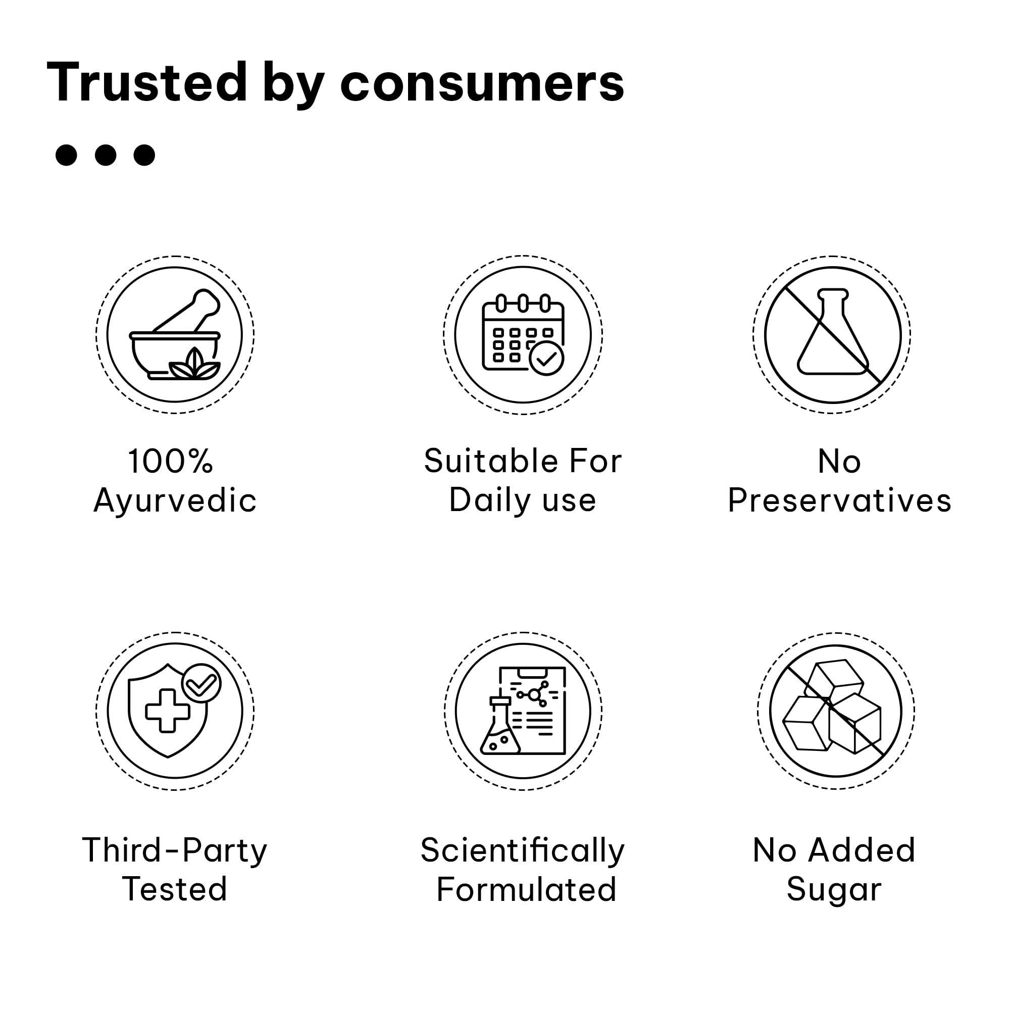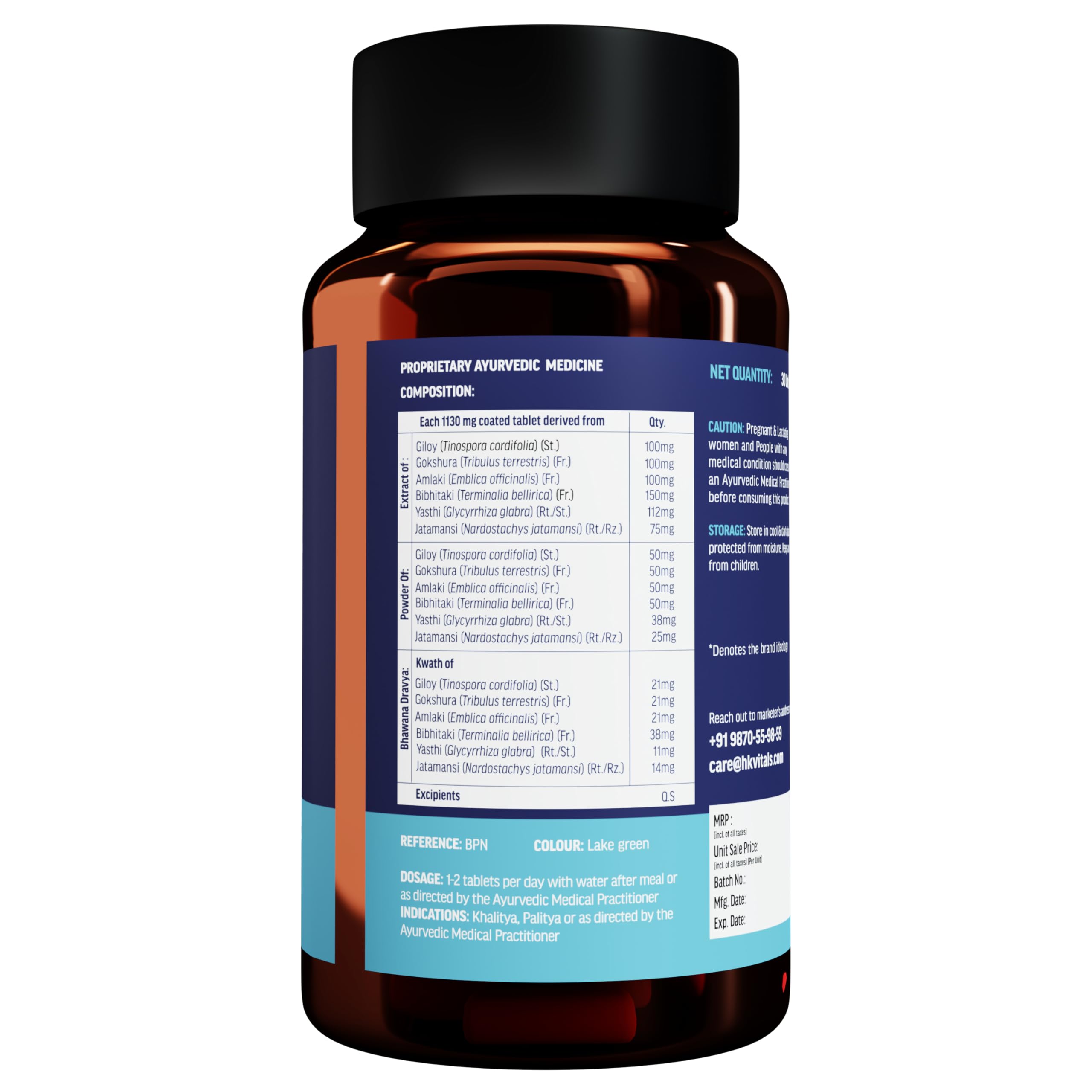 MAINTAINS SCALP HEALTH: Giloy's anti-inflammatory properties reduce scalp inflammation that causes hair follicles to weaken and result in hairfall. Gokshura improves blood circulation in the scalp ensuring hair follicles receive the necessary oxygen and n