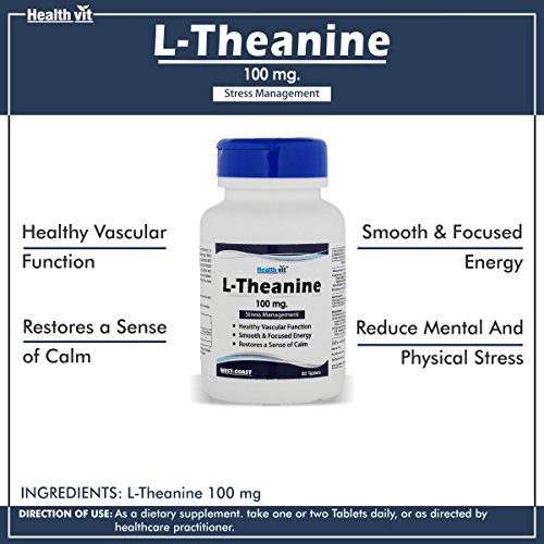 Healthvit L-Theanine 100mg For Stress Management | Healthy Vascular Function | Smooth & Focused Energy | Restores a Sense of Calm | Vegan And Gluten Free | 60 Tablets