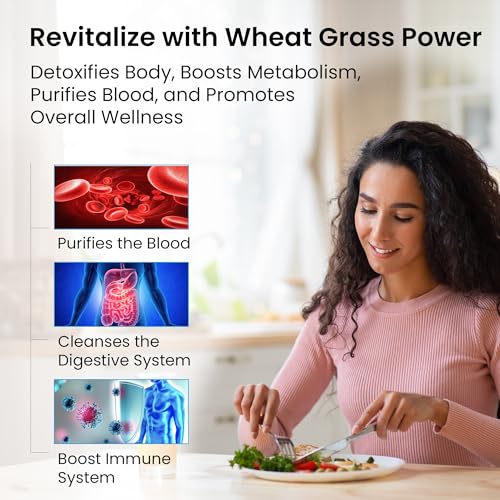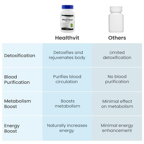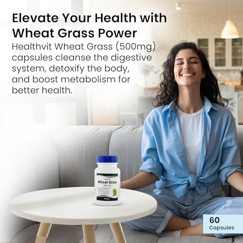 Healthvit Wheat Grass 500mg For Detoxifies The Body | Boosts Immune System | Increase Energy Level | Alkaline Superfood | 100% Natural And Non-GMO | 60 Capsules